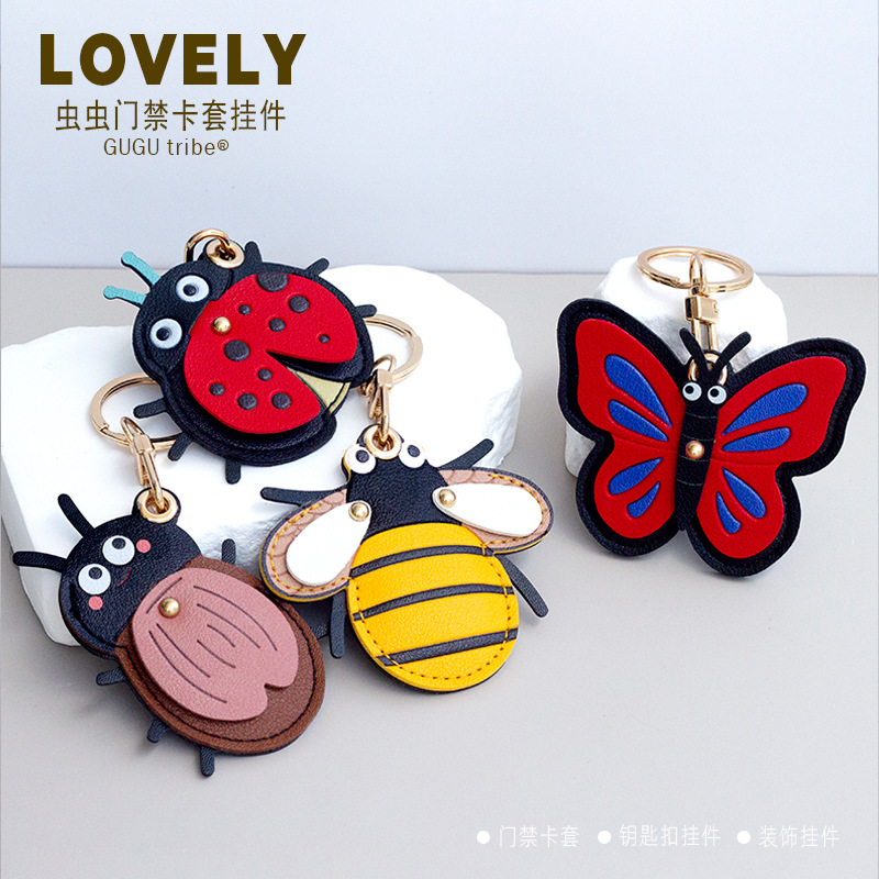 かわいい昆虫の革製ペンダント、かわいいアクセスカードホルダー、キーホルダー、クリエイティブな小さなギフトペンダント、スクールバッグアクセサリー、ギフト