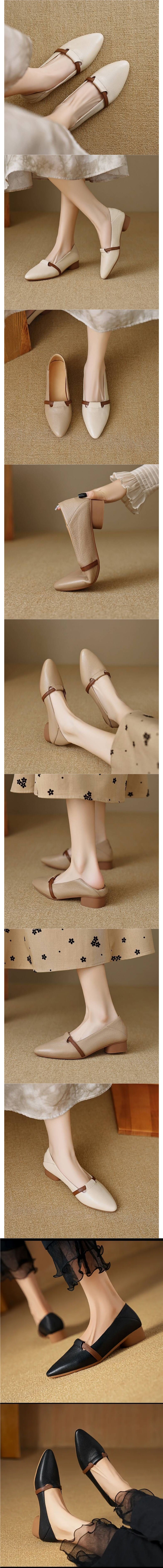【软皮]法式复古真软皮单鞋新款2024通勤脚蹬拼色中口尖头皮鞋