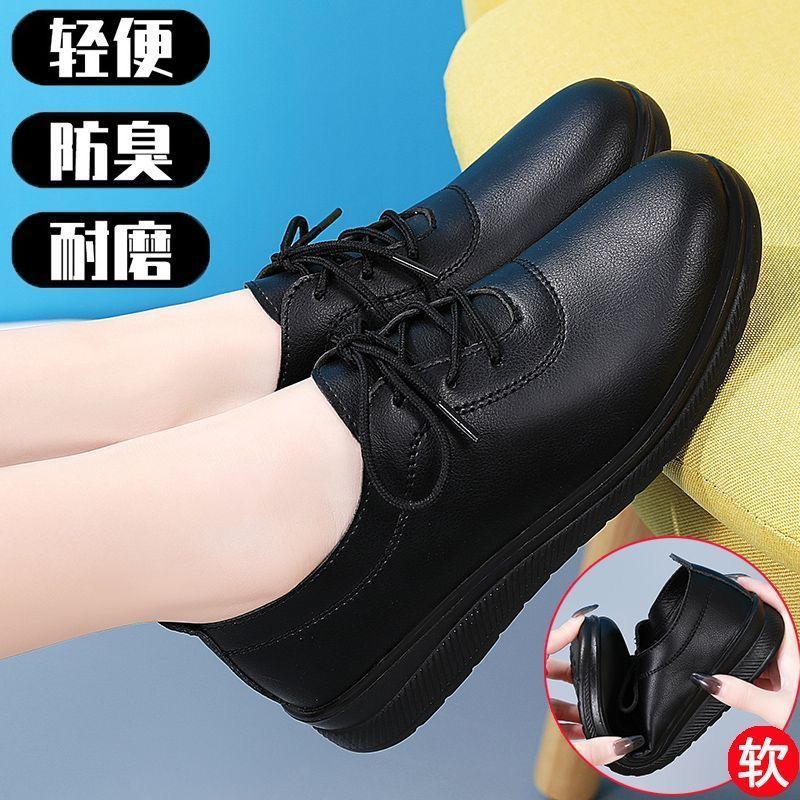 ケンタッキーの台所の滑り止めの靴の黒い小さい革靴の女性の柔らかい底の平底の百合の仕事の靴の中年のお母さんの靴の女性