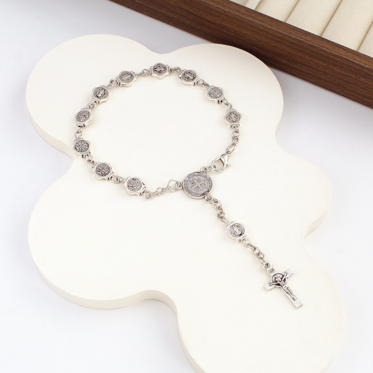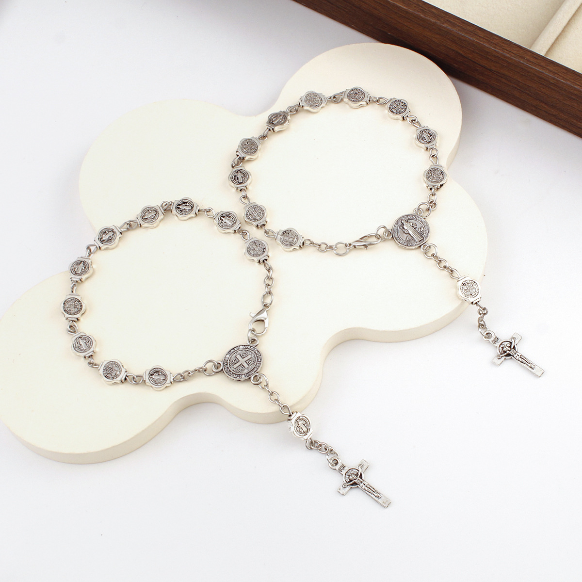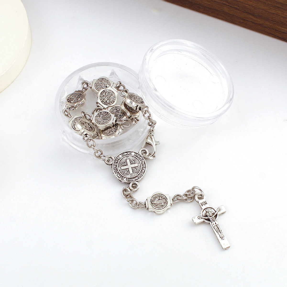 外贸弯针祈祷珠饰品盒装复古金属圣本笃念珠手链十字架男手串手环