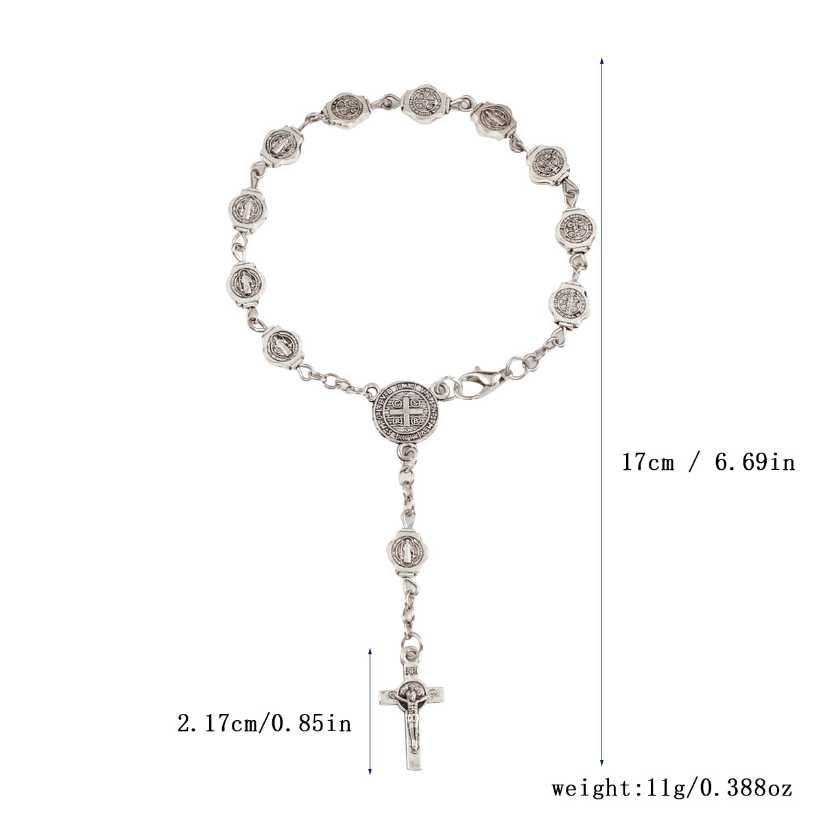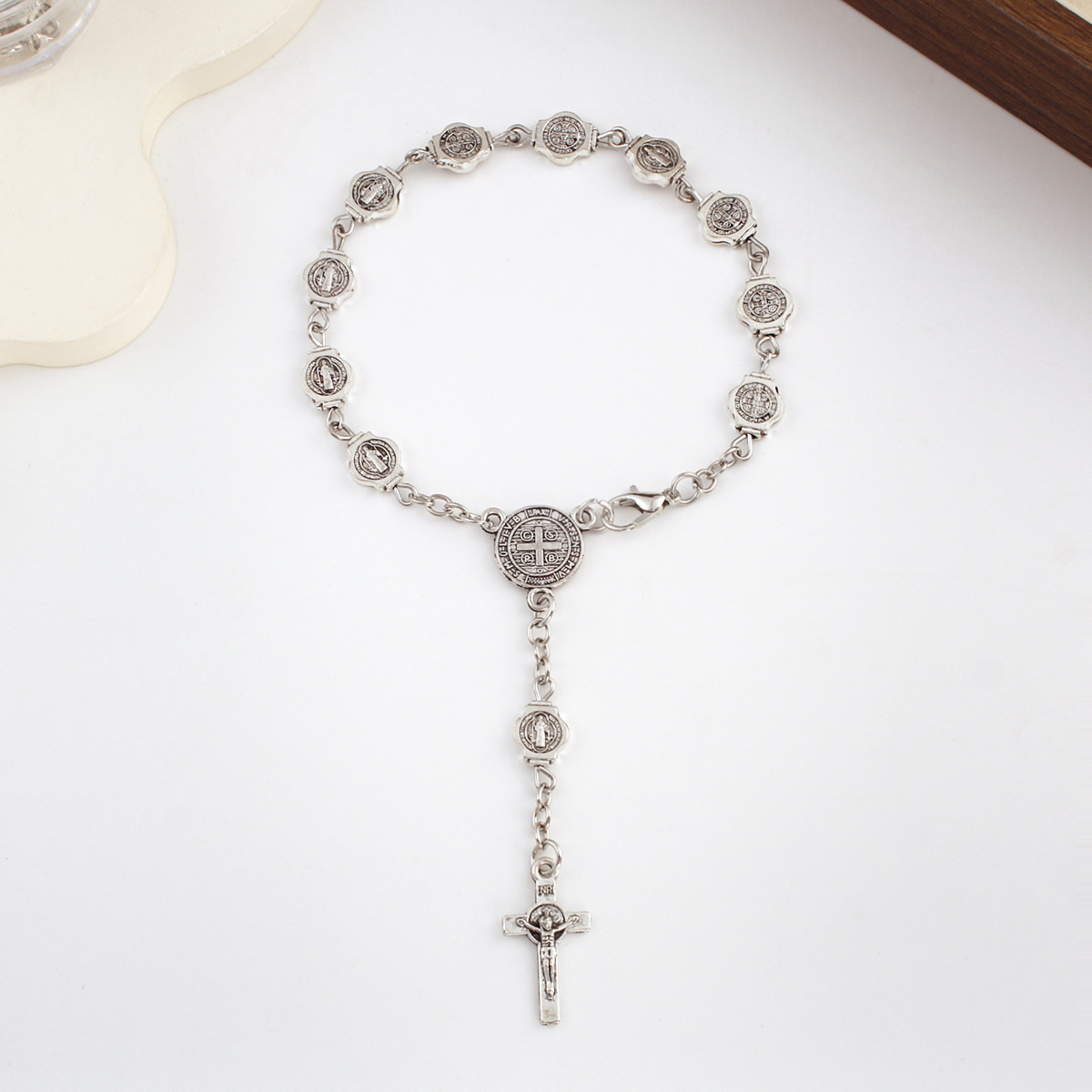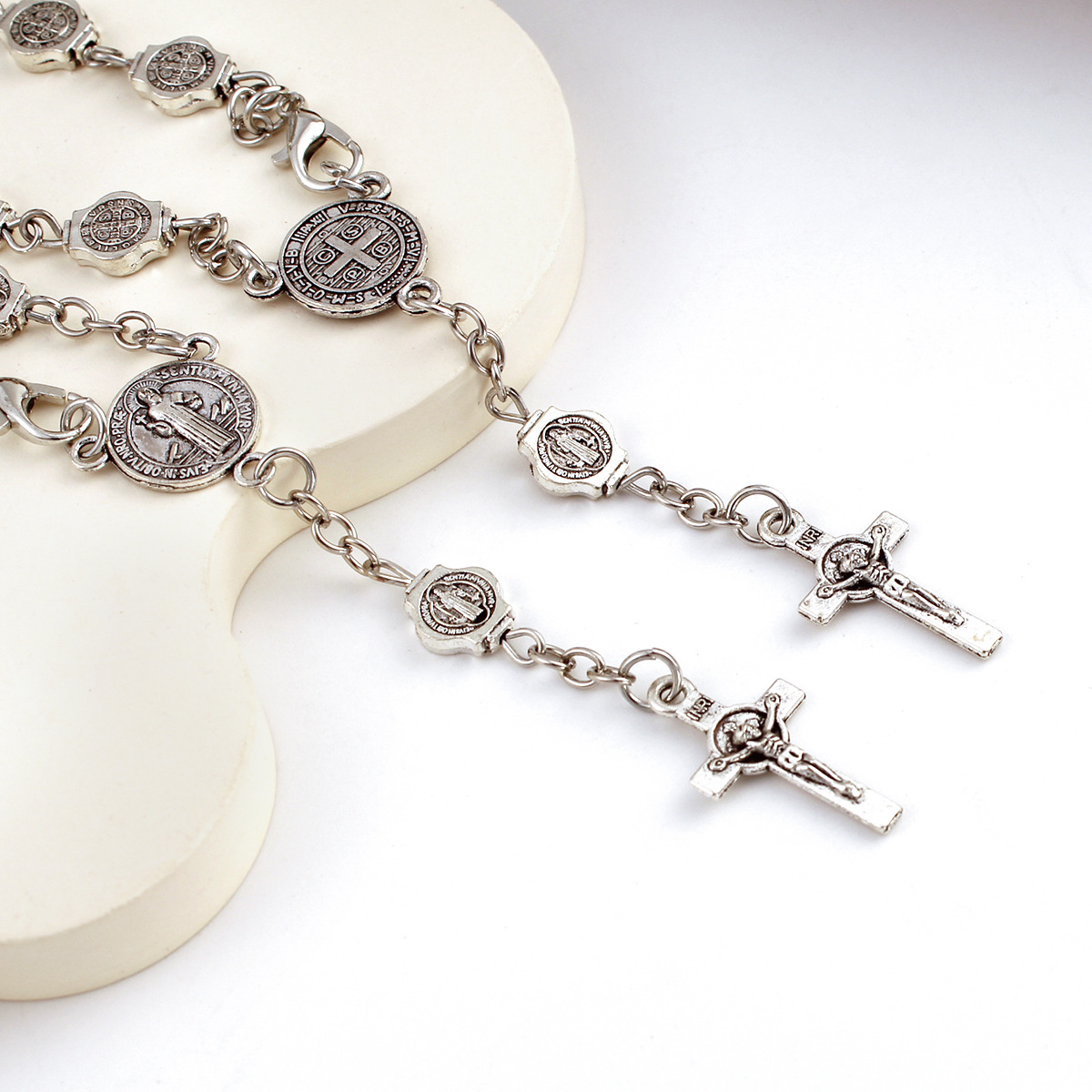 外贸弯针祈祷珠饰品盒装复古金属圣本笃念珠手链十字架男手串手环