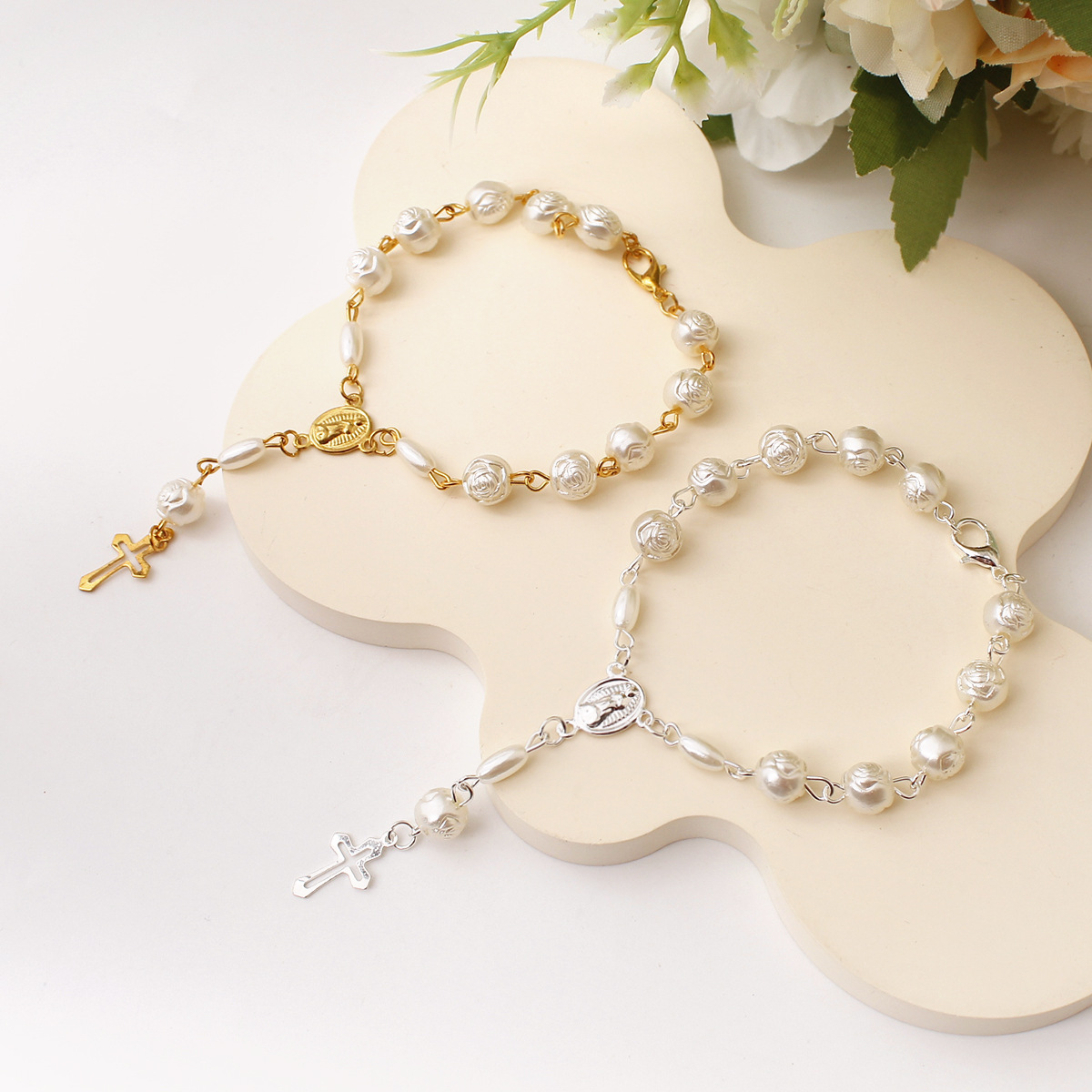 クロスボーダー热い贩売翼ローズ花洗礼ビーズ真珠ブレスレット数珠クロスロザリー手饰りメーカー卸売