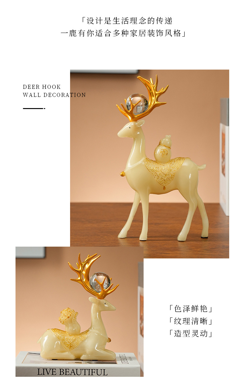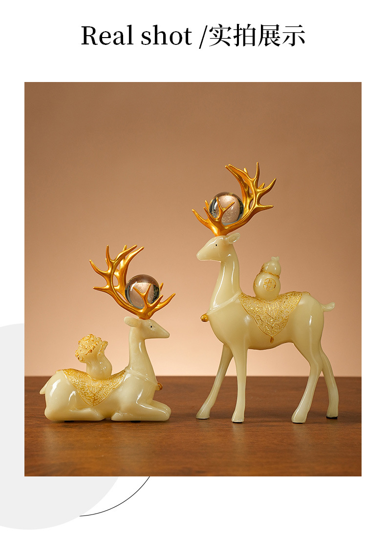 新款仿玉白鹿装饰品客厅房间电视柜简约玄关酒柜工艺品立体摆件