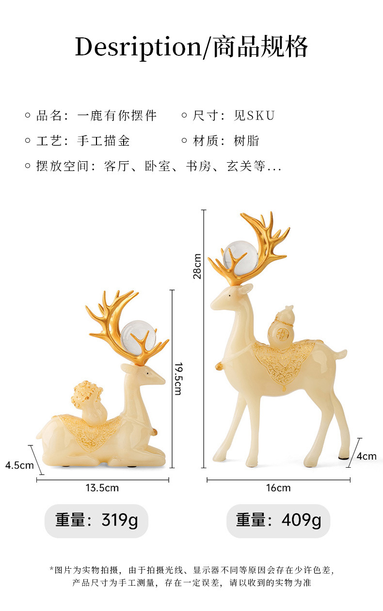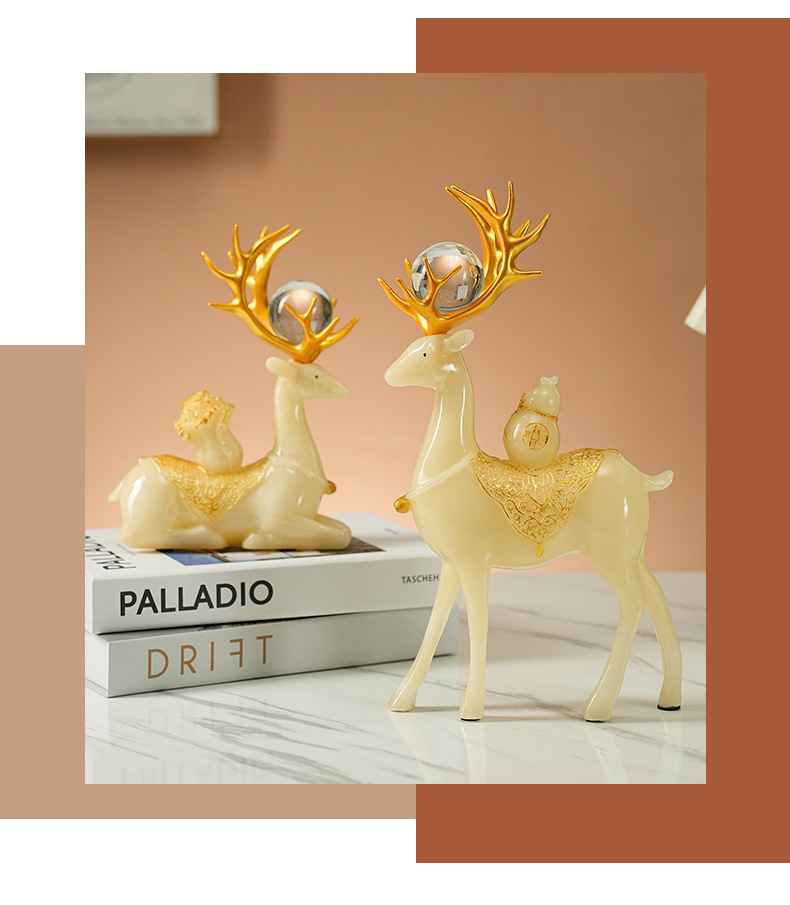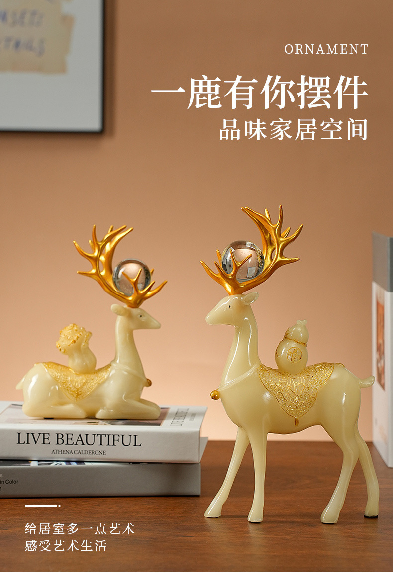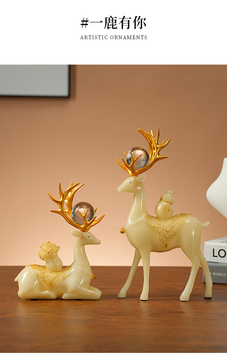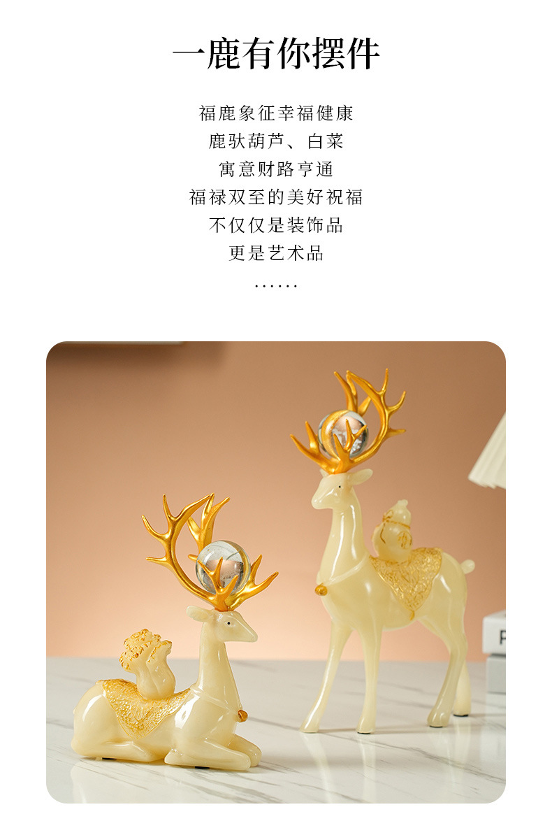 现代轻奢招财麋鹿摆件高档客厅酒柜电视柜装饰品玄关创意小鹿摆设