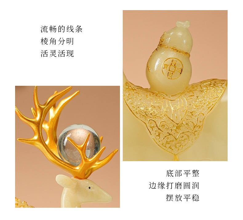 颜色 QX仿玉百财对鹿