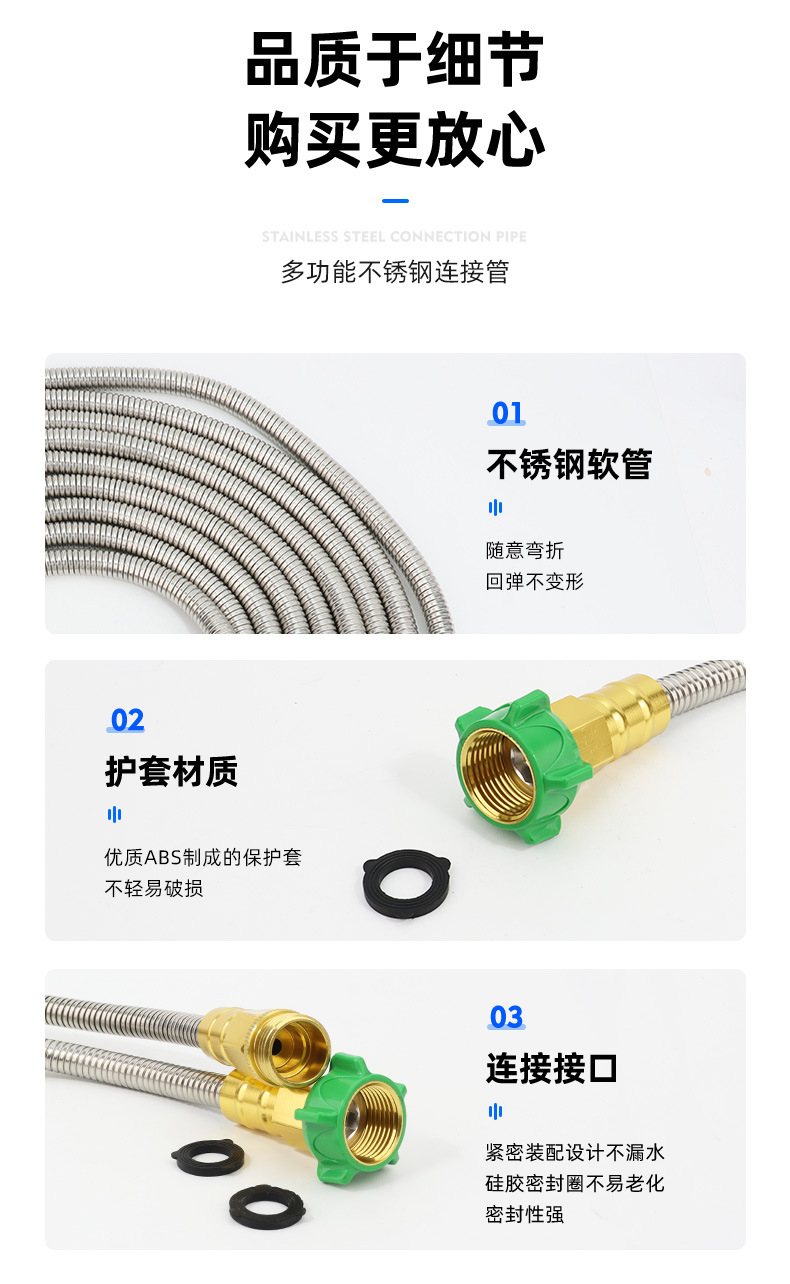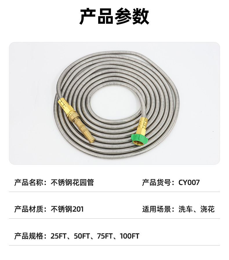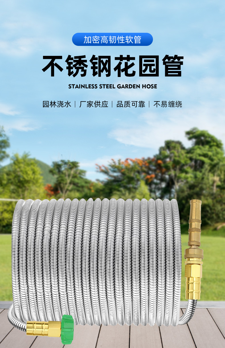 亚马逊防爆不锈钢花园软管灌溉洗车波纹软管高压水枪园林园艺管