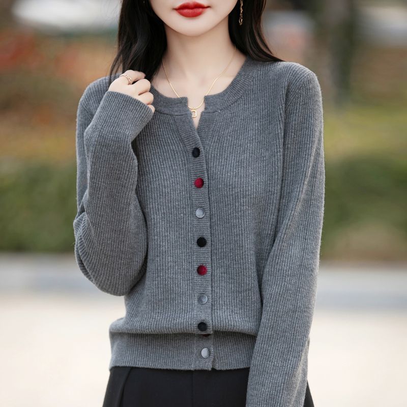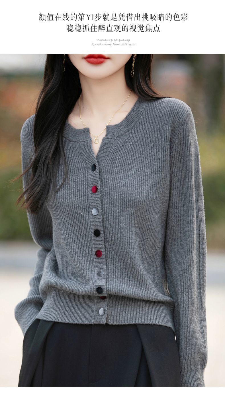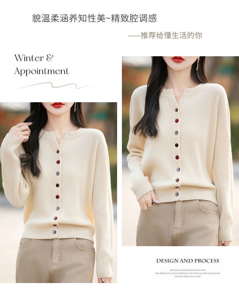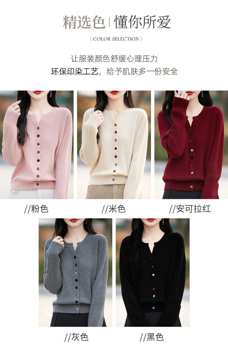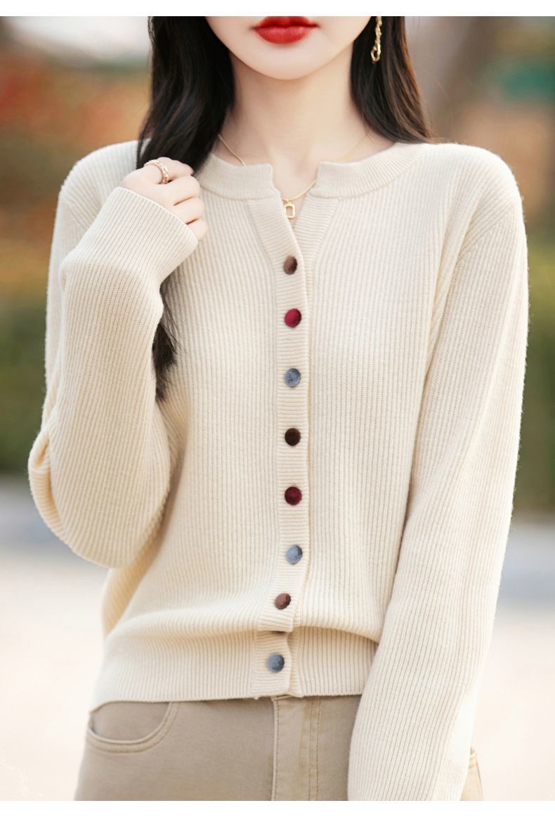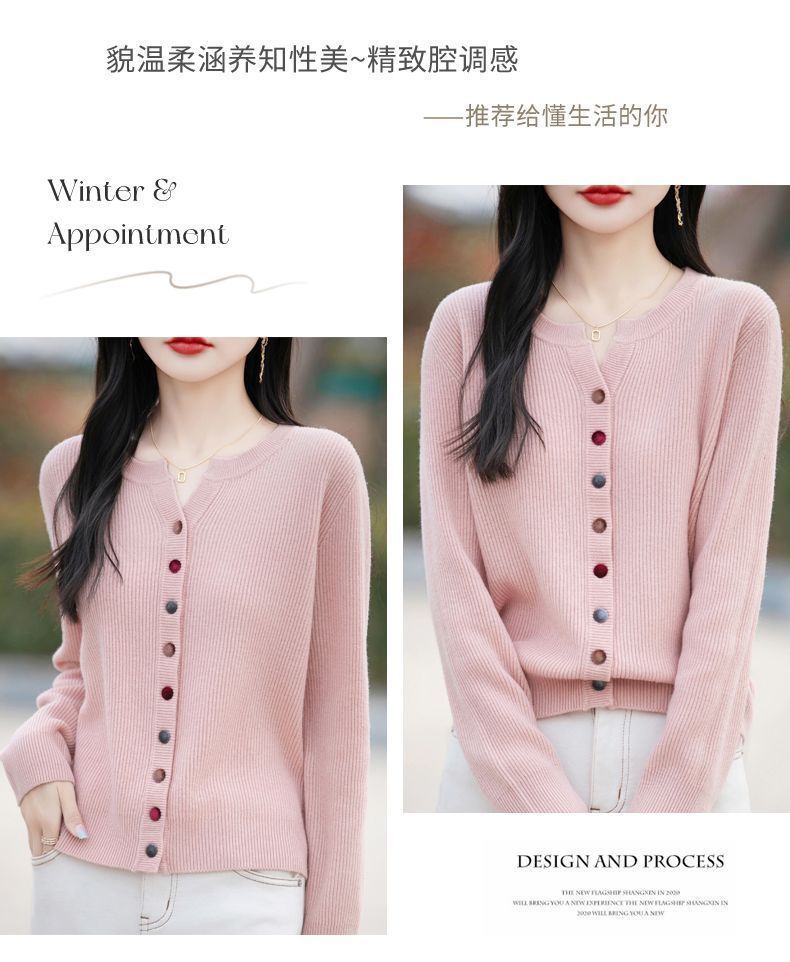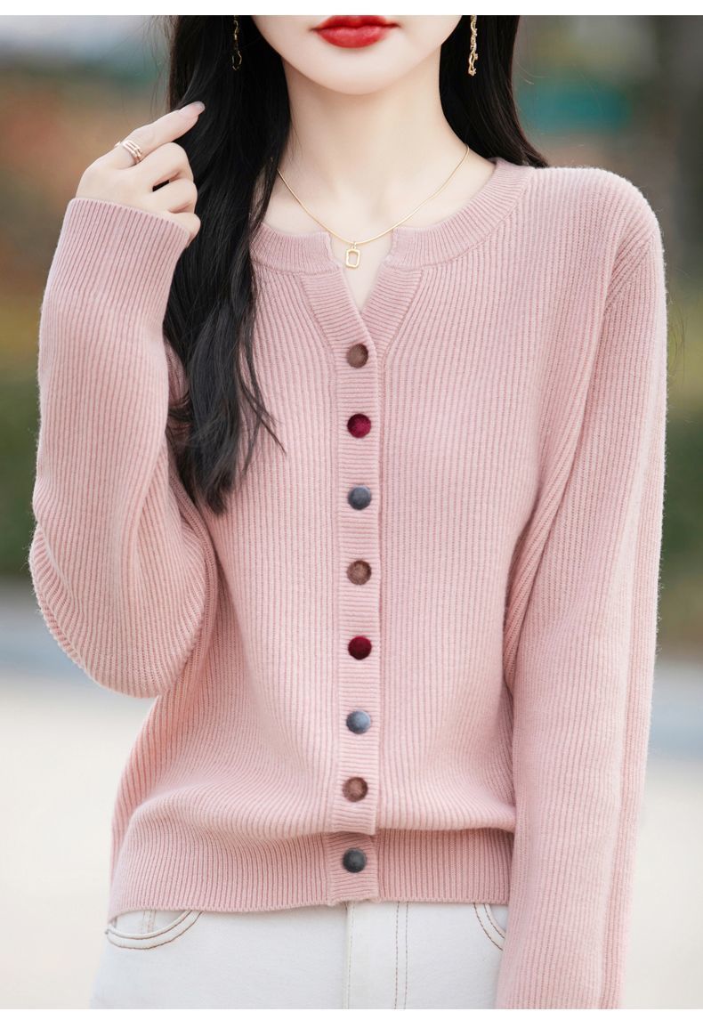 春秋新款毛衣安迪绒针织衫圆领针织开衫时尚彩扣毛衣外套上衣