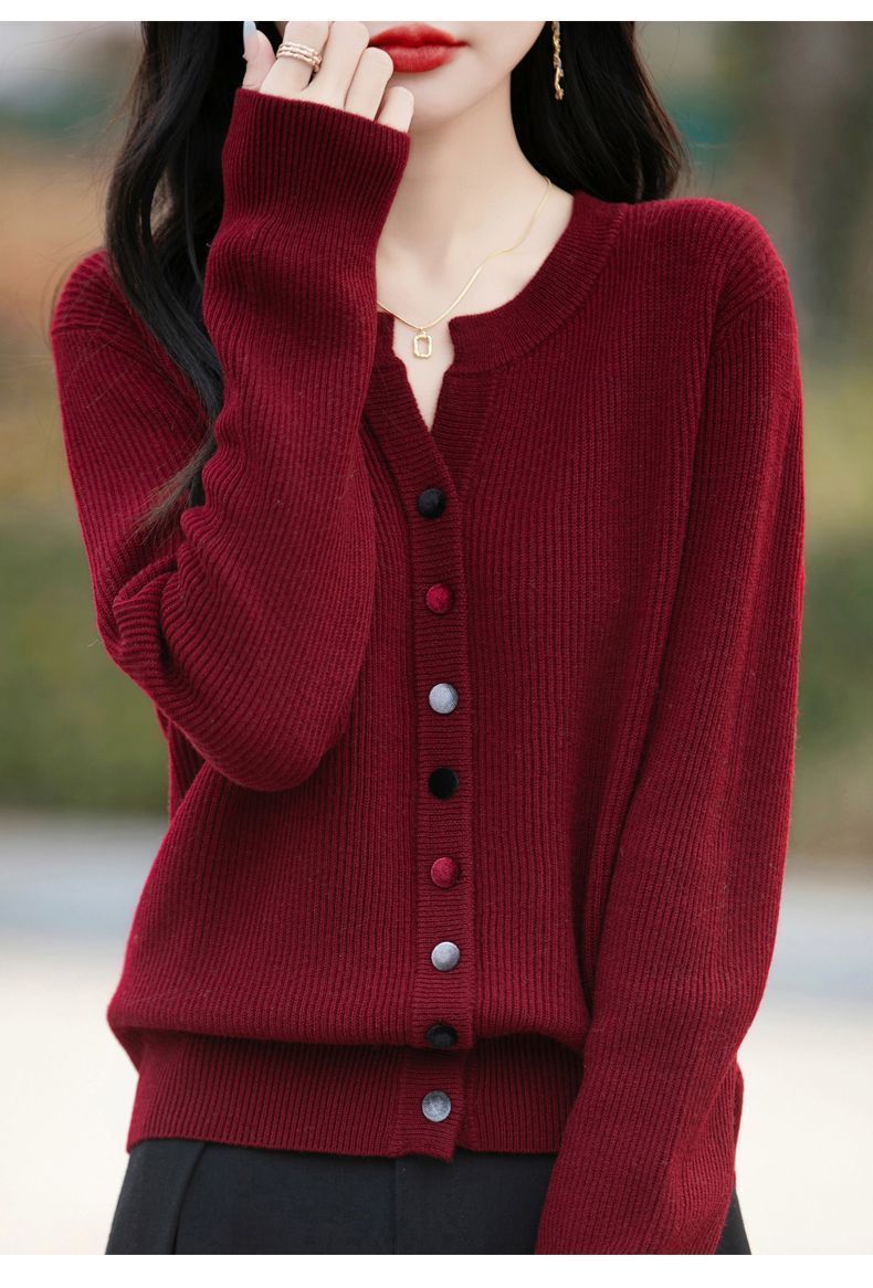 秋冬独特の新中国風安可拉紅修身メリヤス女性セーターのデザイン感立襟盤ボタン上着