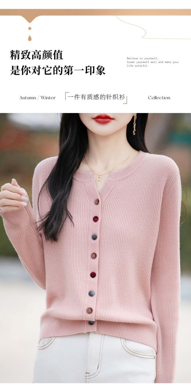 2024ショートvネックニットカーディガンコート女性セーター早秋新ニット長袖小衆上着秋