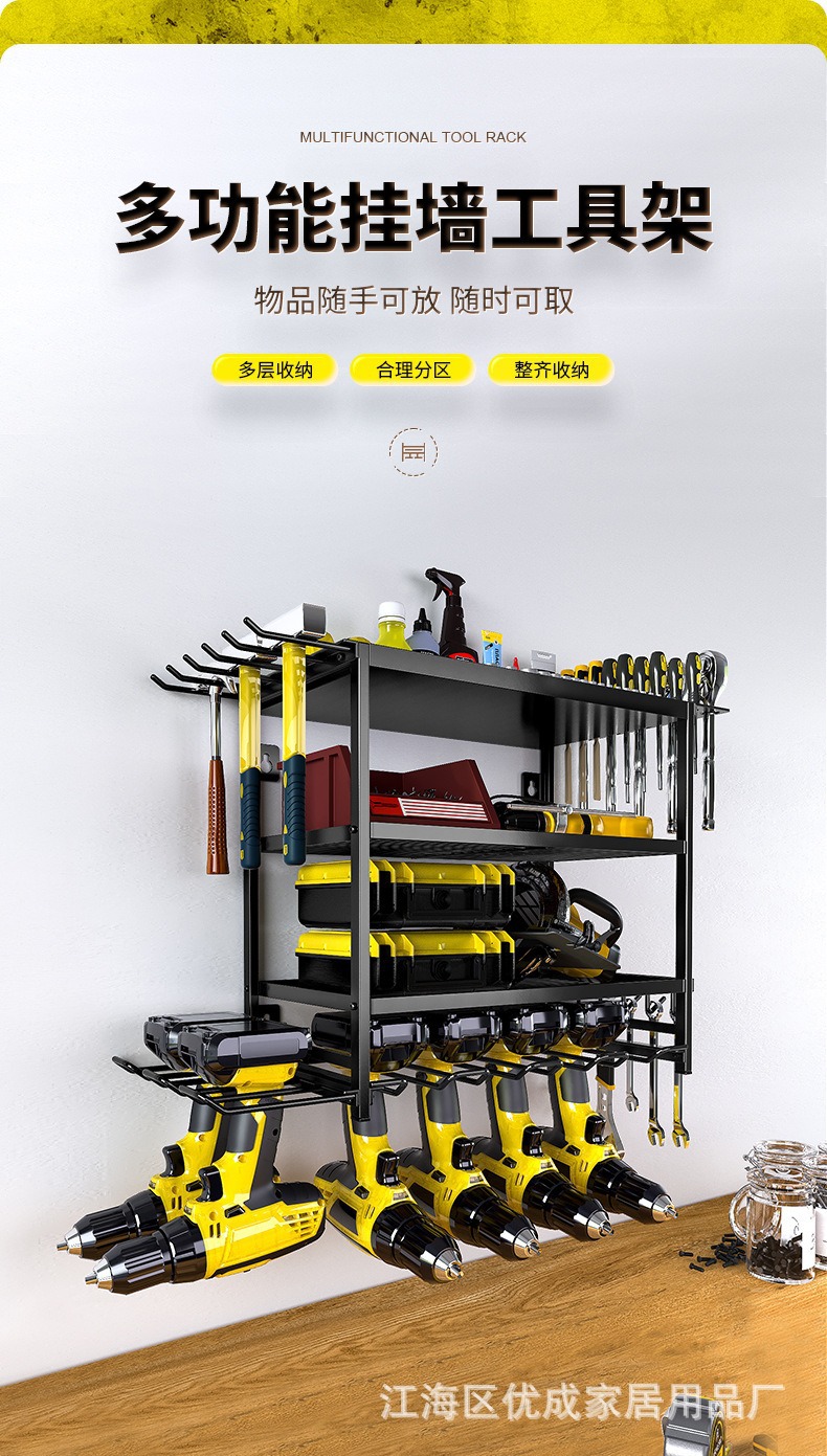 多层电动工具收纳架壁挂式手电钻工具架车库螺丝刀支架工具储物架