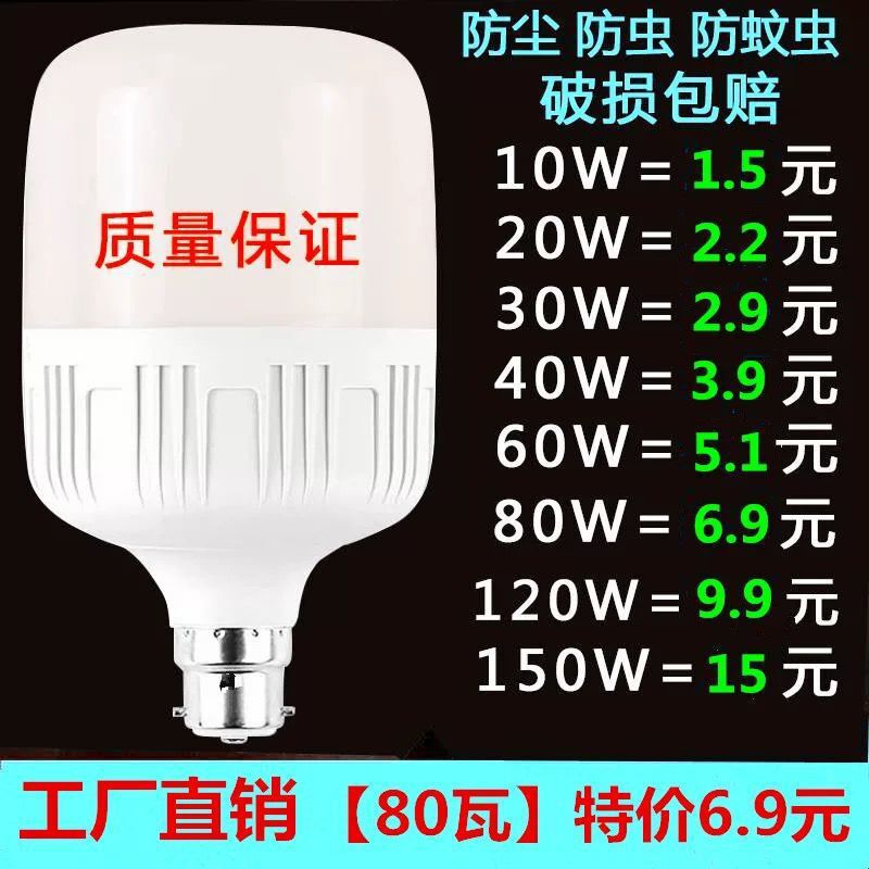节能led灯泡b22卡口老式挂口超亮家用卧室户外照明白光大功率球泡