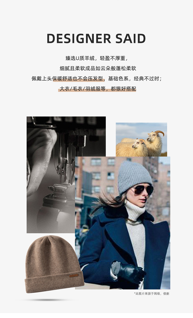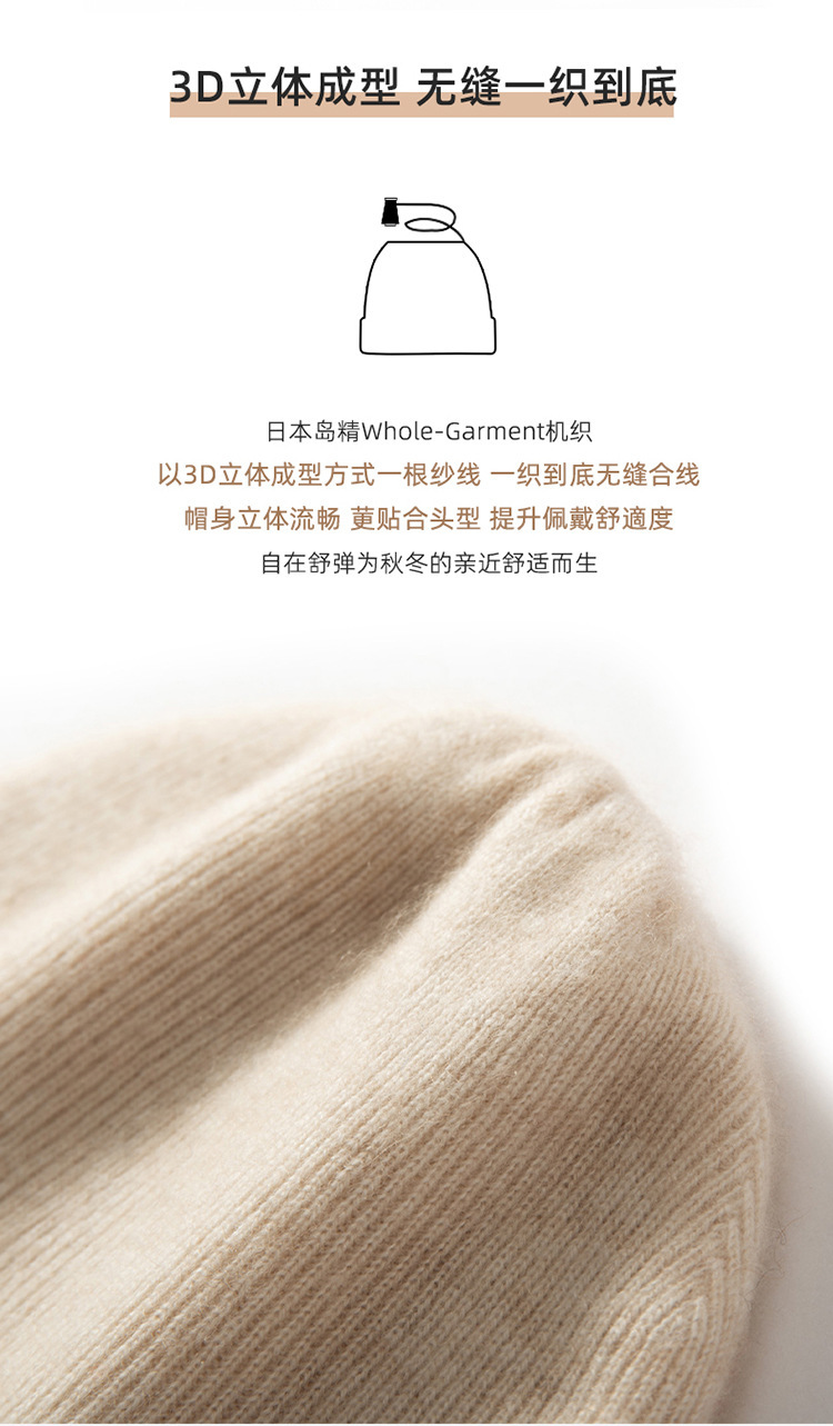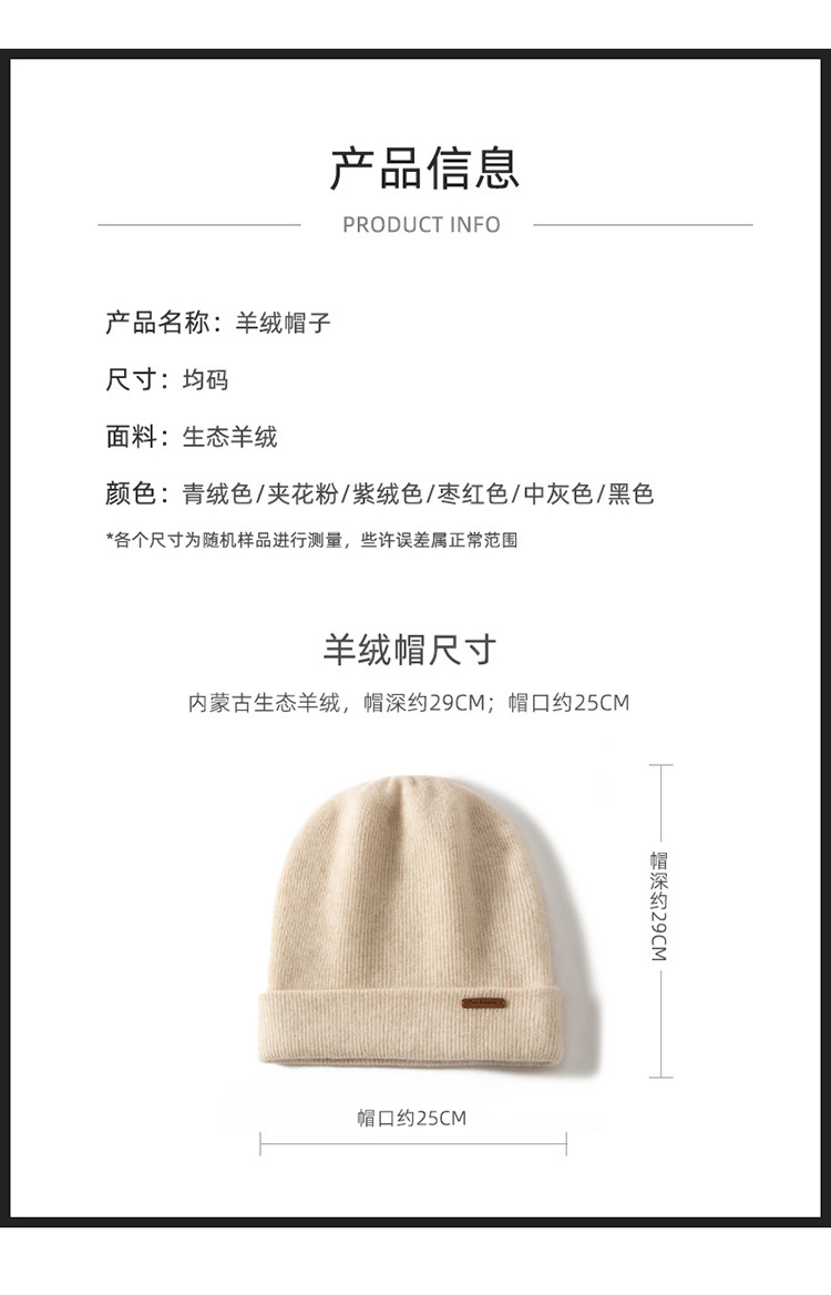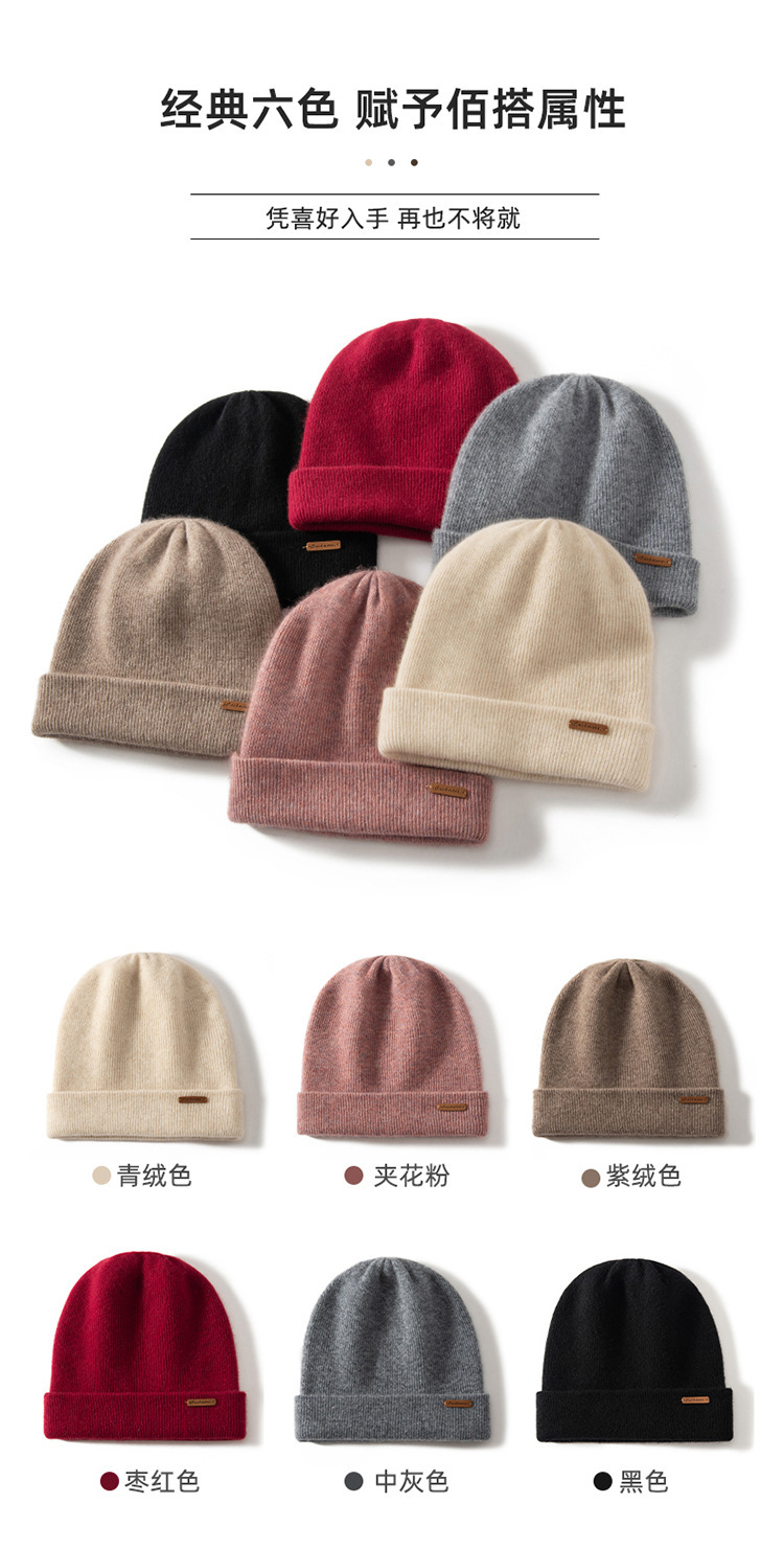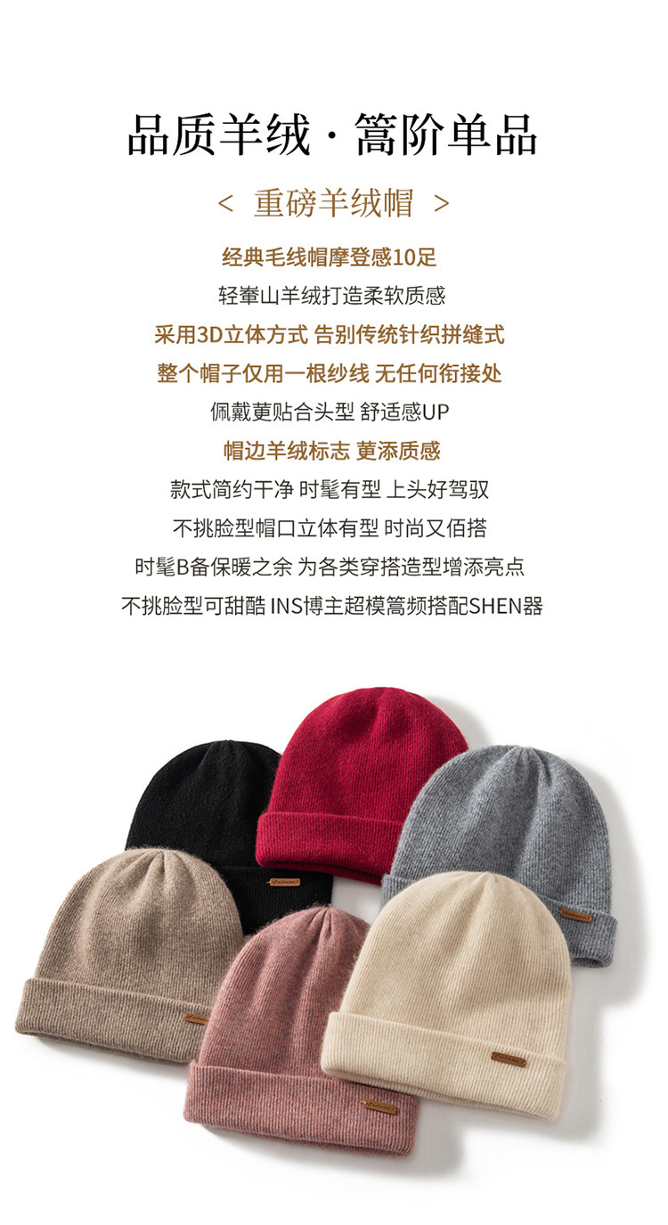 秋冬季加厚100%山羊绒帽子女针织帽男百搭堆堆帽冷帽包头帽批发