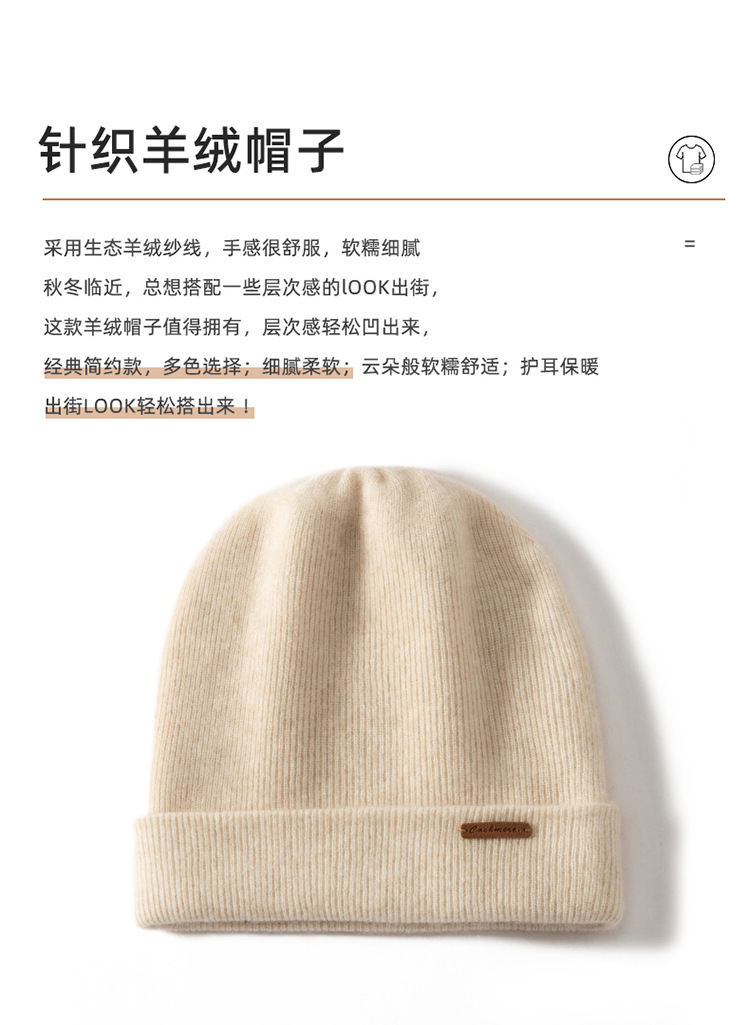 2025秋冬新款山羊绒帽子男女通用双面加厚保暖时尚针织休闲帽冷帽