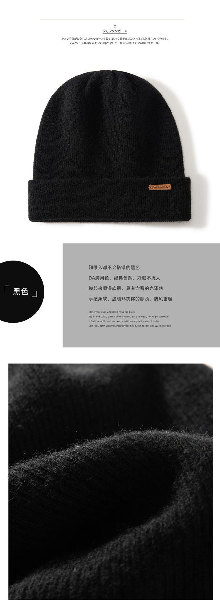 カシミヤニットの帽子は秋冬の越境ウールの毛玉を厚くして保温します。