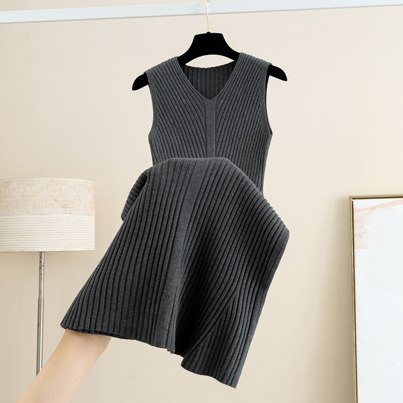 V领针织吊带背心连衣裙女秋冬新款无袖收腰包臀孕妇显瘦内搭长裙