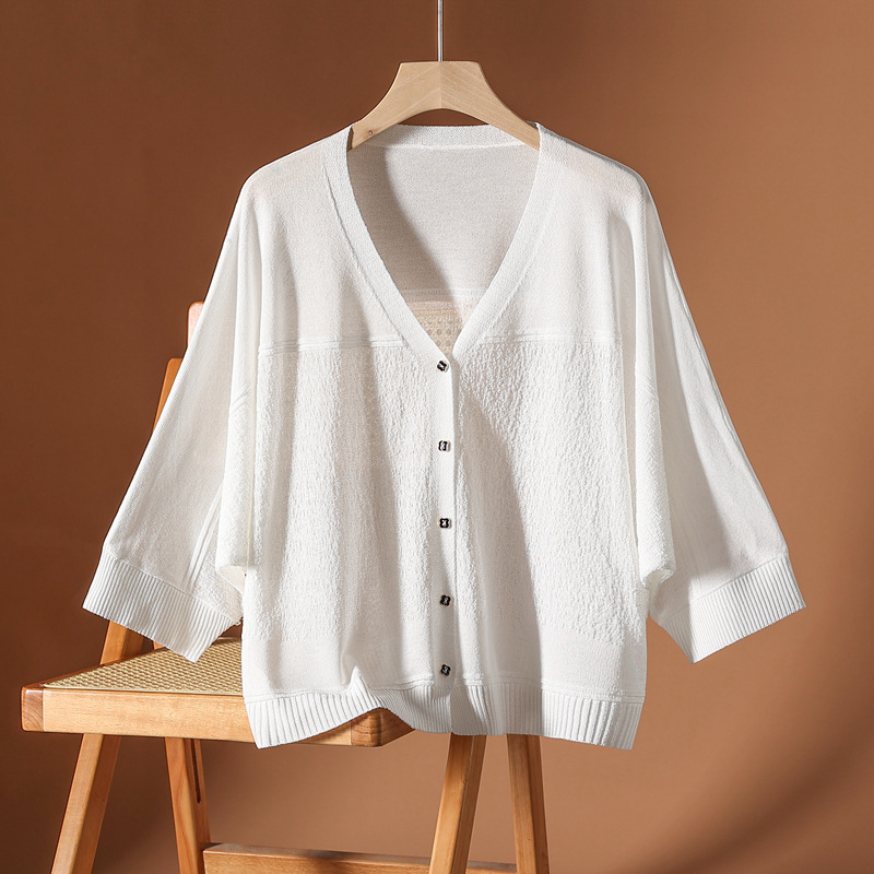 大きいサイズのコウモリの袖の日焼け止めのシャツの氷の糸のニットのカーディガンのコートの女性の2025春夏の新型はサスペンダーのスカートのエアコンのシャツを配合します。