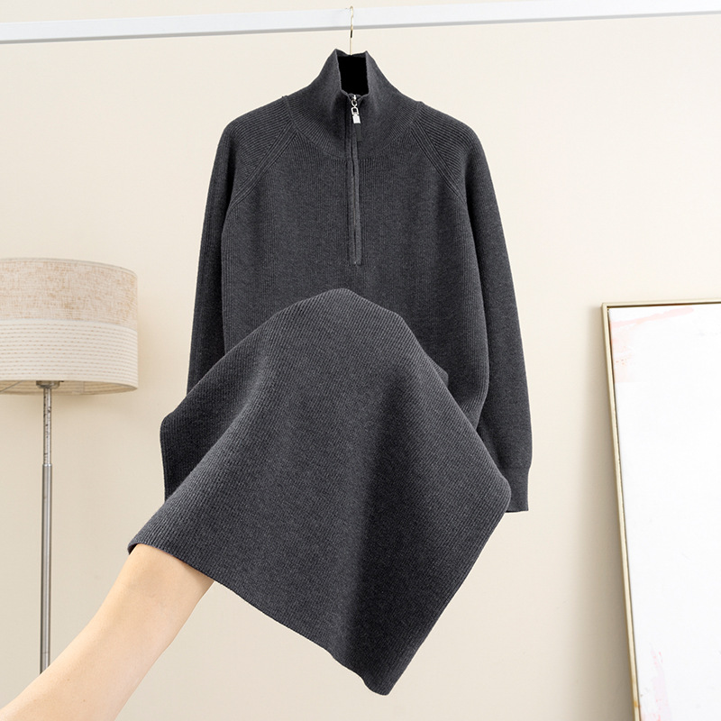 羊毛半高圆领针织连衣裙女秋冬新款过膝宽松显瘦毛衣裙内搭打底裙