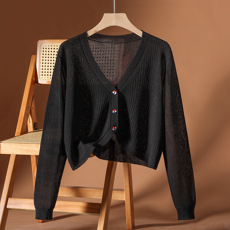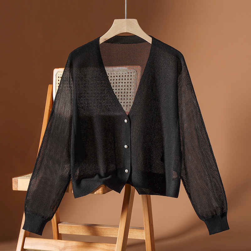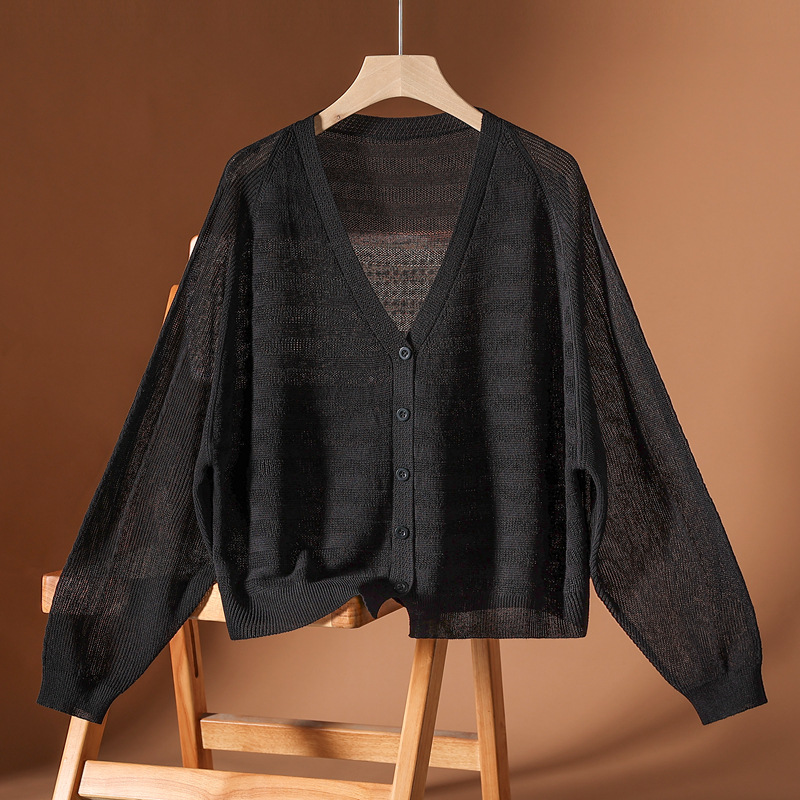 2025春夏の新型ニットカーディガンの上着の女性のゆったりとした大きいサイズのストラップのスカートの薄い日焼け止めのシャツのエアコンのシャツ