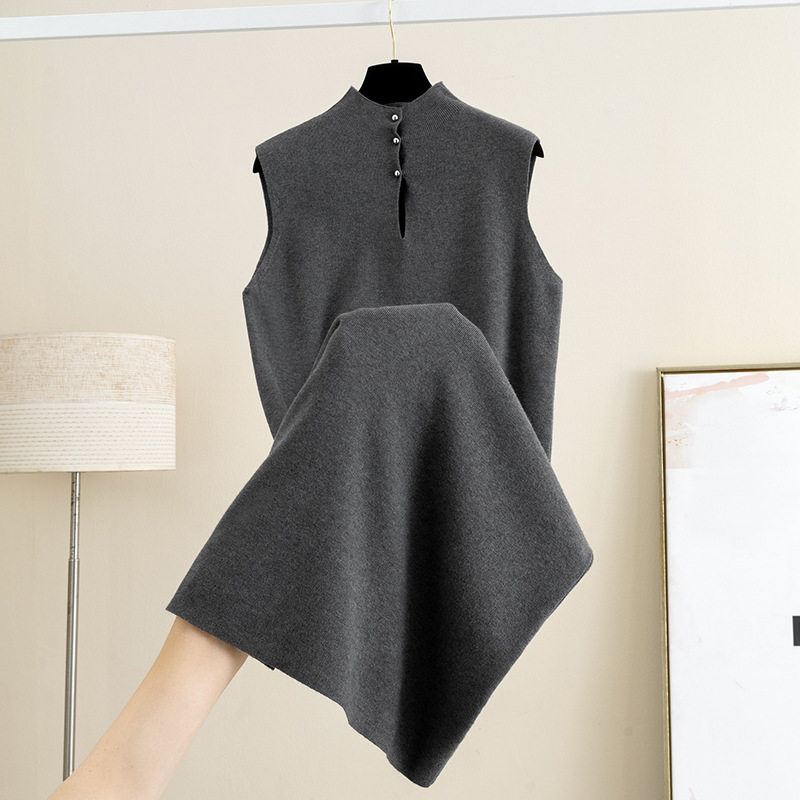 羊毛半高领针织背心连衣裙女秋冬新款无袖背心毛衣裙内搭打底长裙