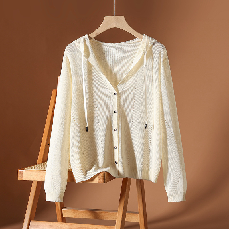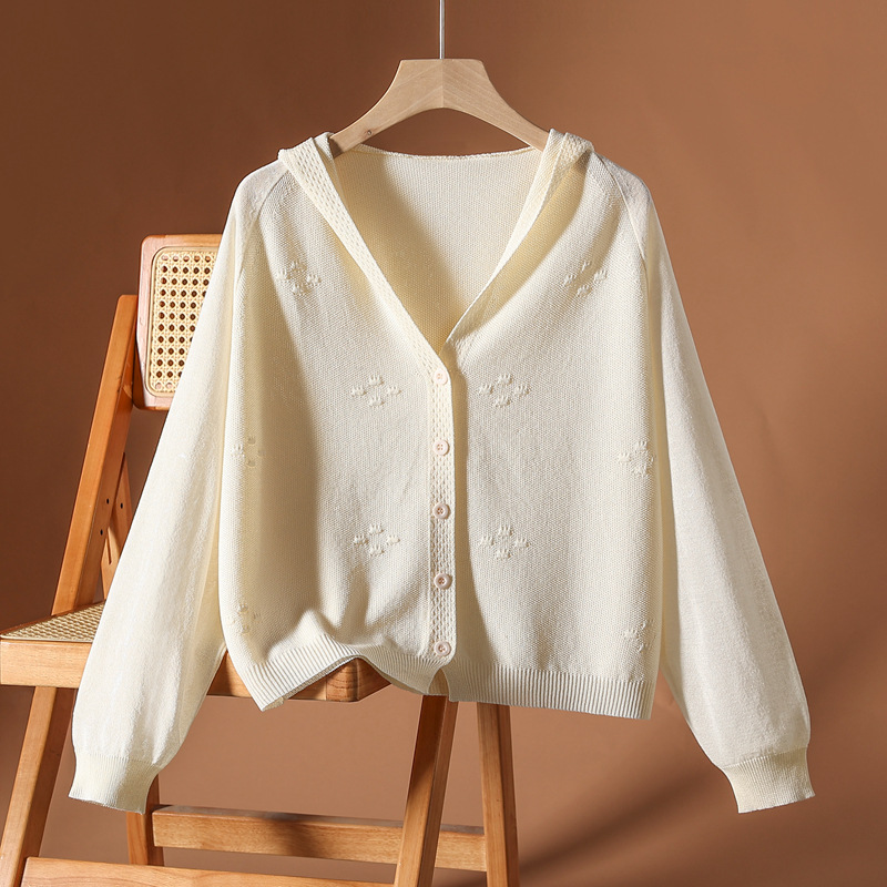アイスニットのカーディガンのコートと帽子の上着の女性2025春夏の新型のゆったりした大きいサイズとストラップの日焼け止めのシャツが薄いです。