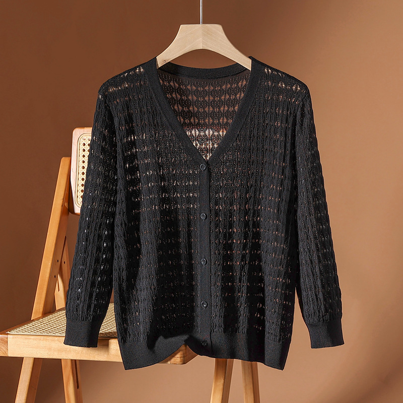 大きいサイズの夏の新しい七分袖中空ニットカーディガンジャケット女性用サスペンダースカート日焼け止めシャツショールブラウス