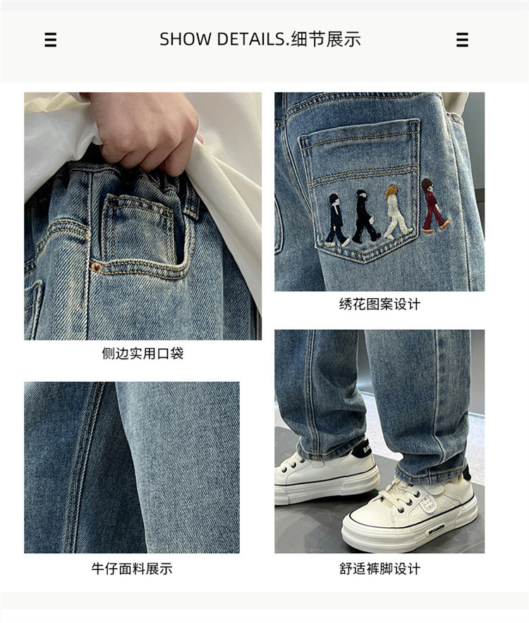 跨境童裤男童牛仔裤春秋款2025新款秋款裤子中大童春季男孩长裤潮