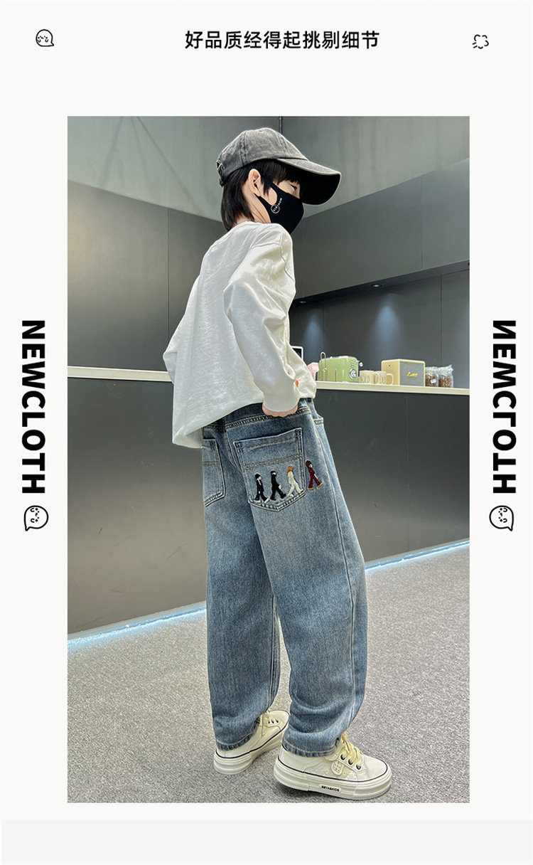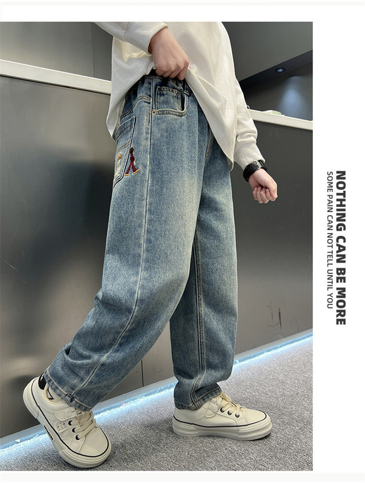 子供服男の子カジュアルパンツ春と秋の女の子の学生デニムのズボン