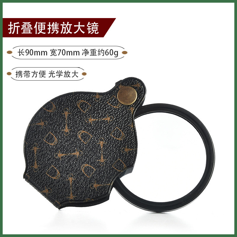 新款便携式70MM花纹皮套折叠放大镜高清高倍小巧促销礼品调焦