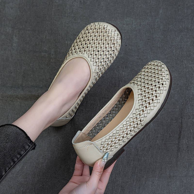 手織りのデザイン感のある靴女性の夏の新しいトップ層牛革の透かし彫りの通気性があります。