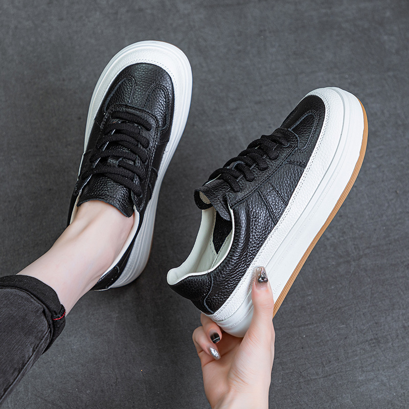 头层牛皮休闲运动鞋系带女鞋复古手工老爹鞋厚底轻便德训鞋女单鞋
