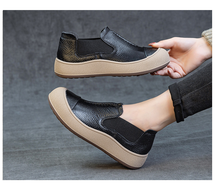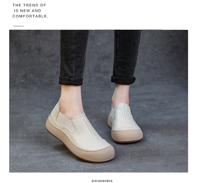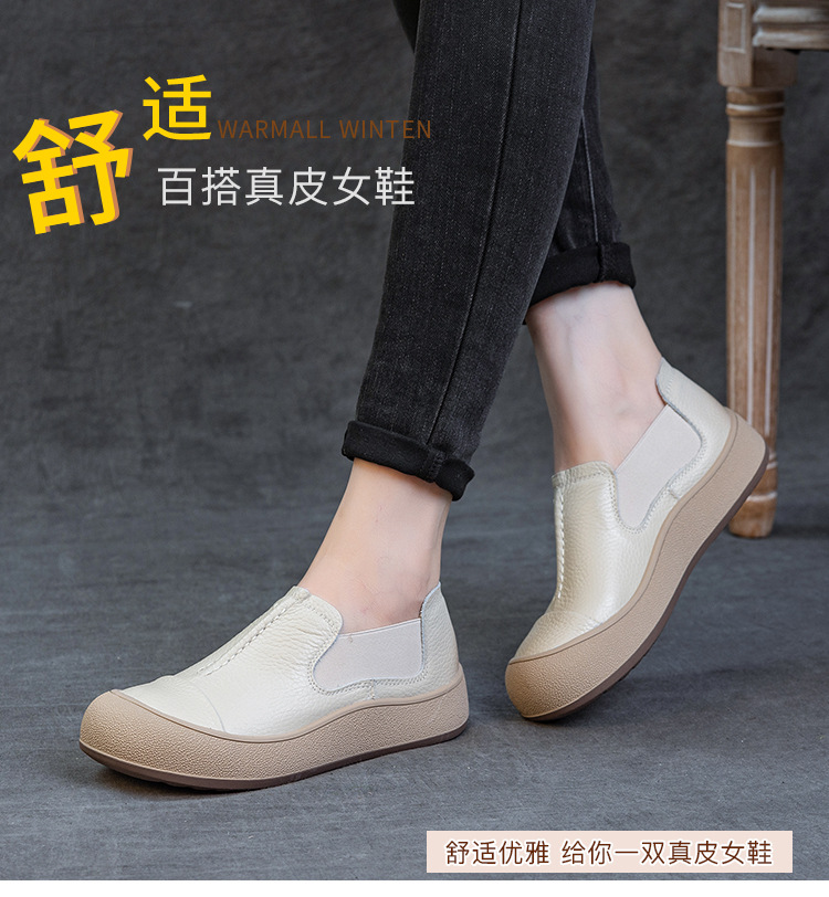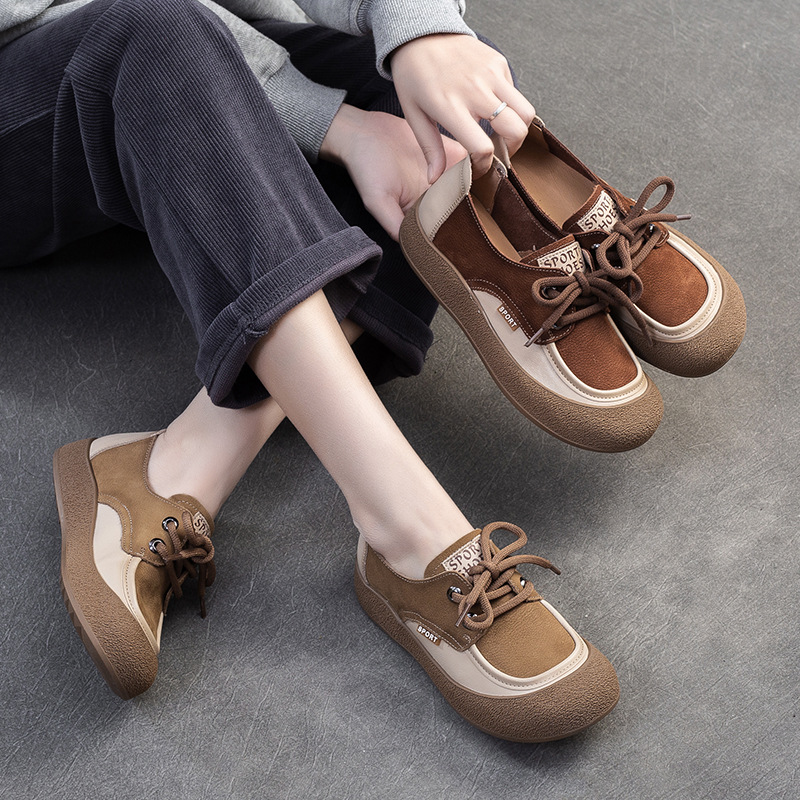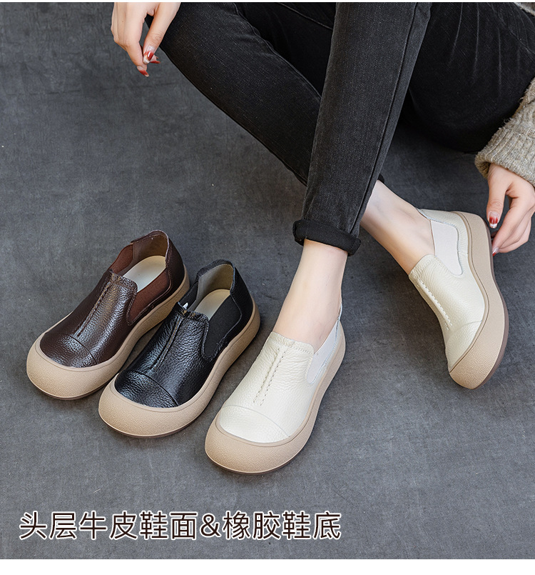 2025秋冬新头层牛皮女鞋简约百搭手工复古鞋平底防滑宽松休闲板鞋