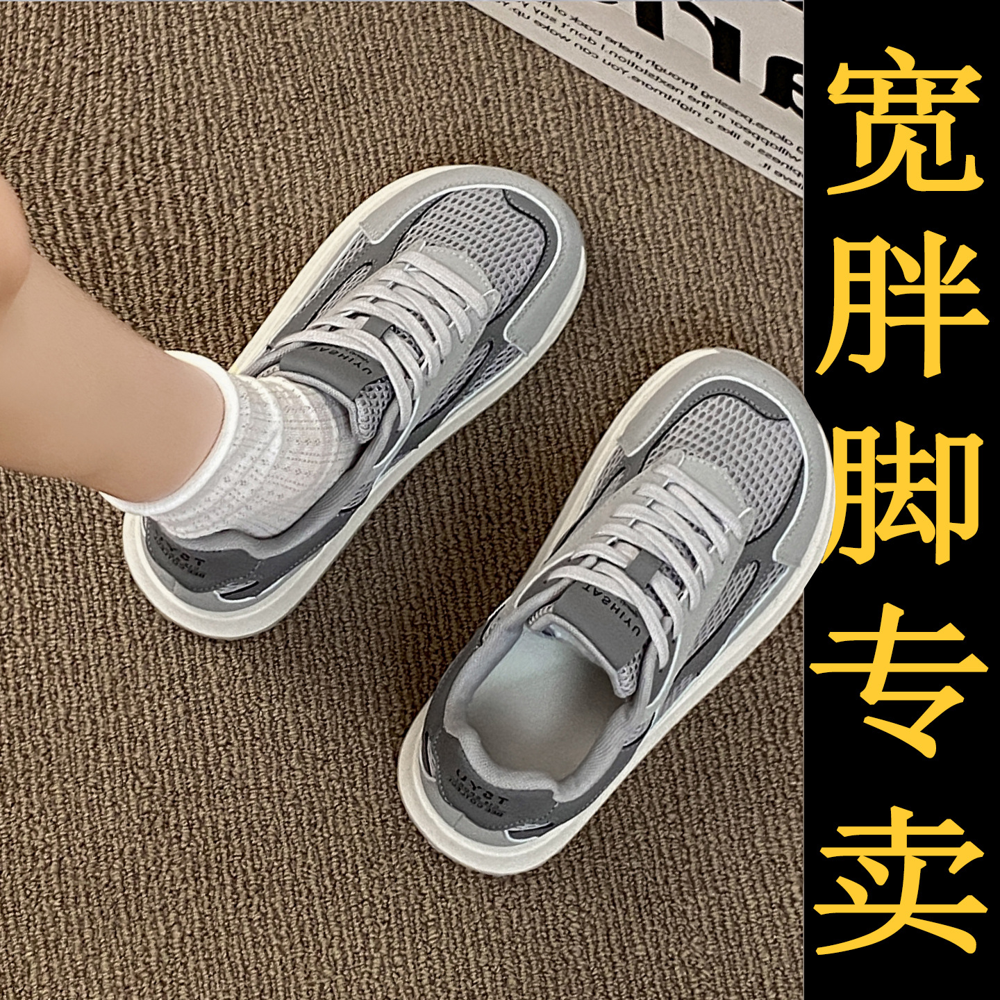 宽脚肥胖mm网面运动鞋女秋季高级感34码莆田老爹鞋休闲阿甘德训鞋