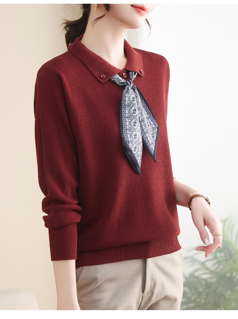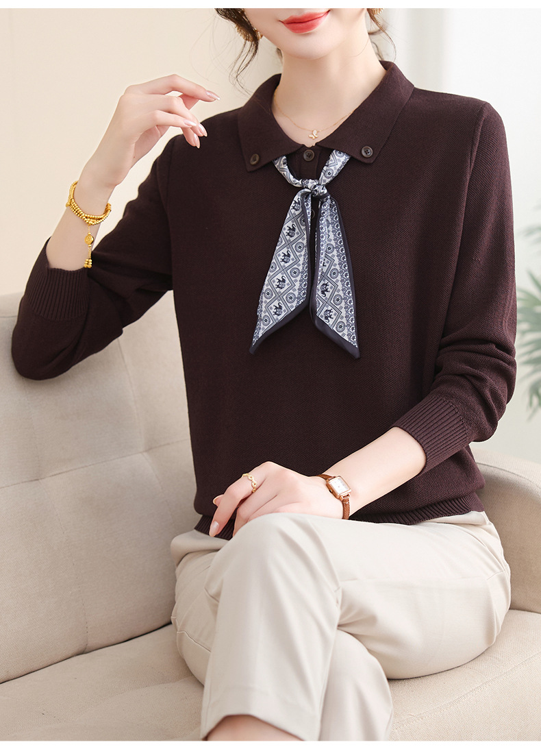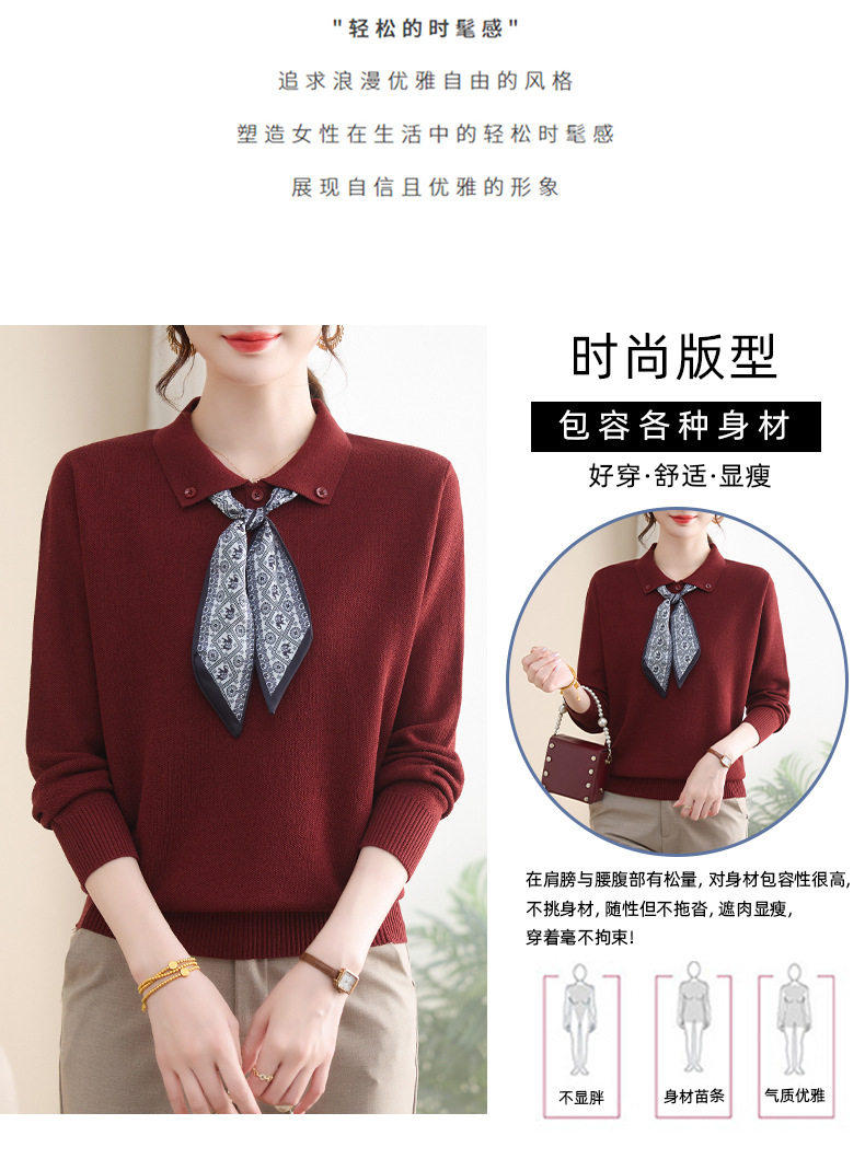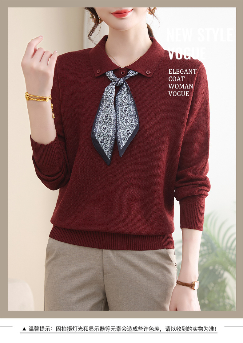 【厂家直供】秋季新款翻领带丝巾打底上衣外穿宽松气质减龄针织衫