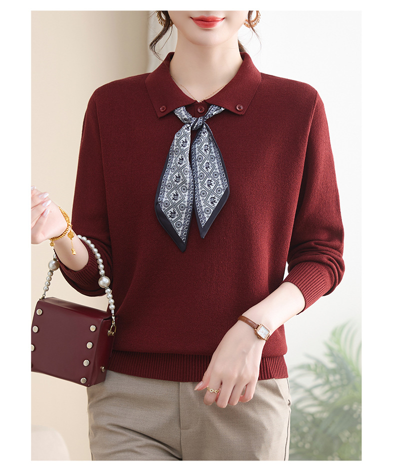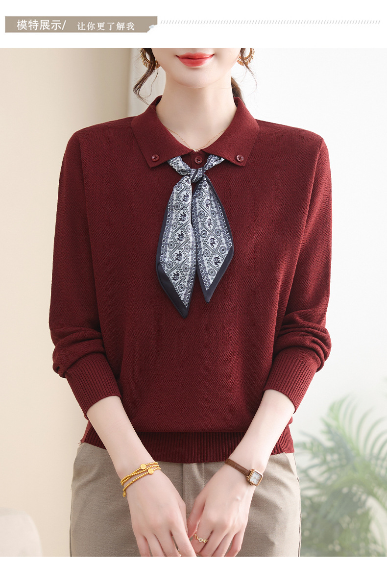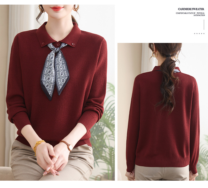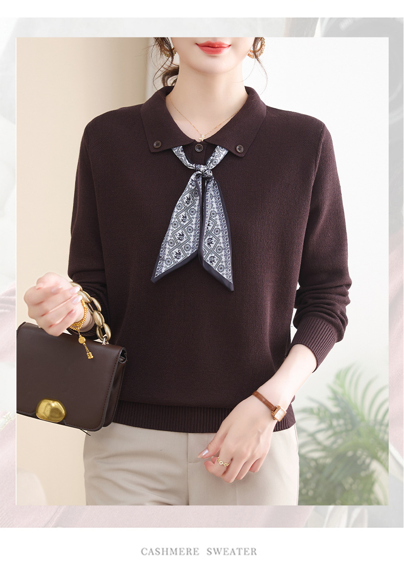 【厂家直供】秋季新款翻领带丝巾打底上衣外穿宽松气质减龄针织衫