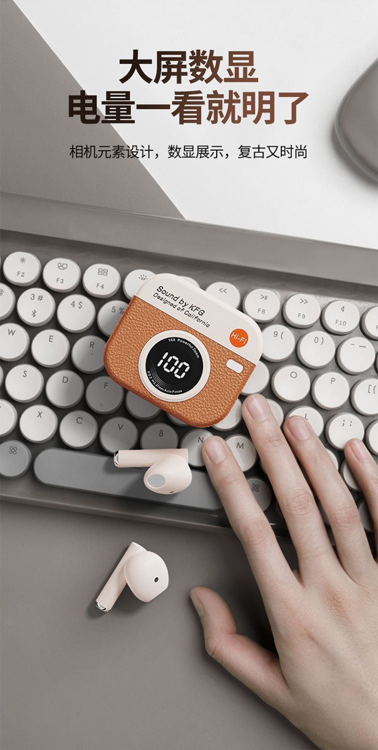Q86新款复古相机无线蓝牙耳机半入耳式超长续航Q87大屏电量数显