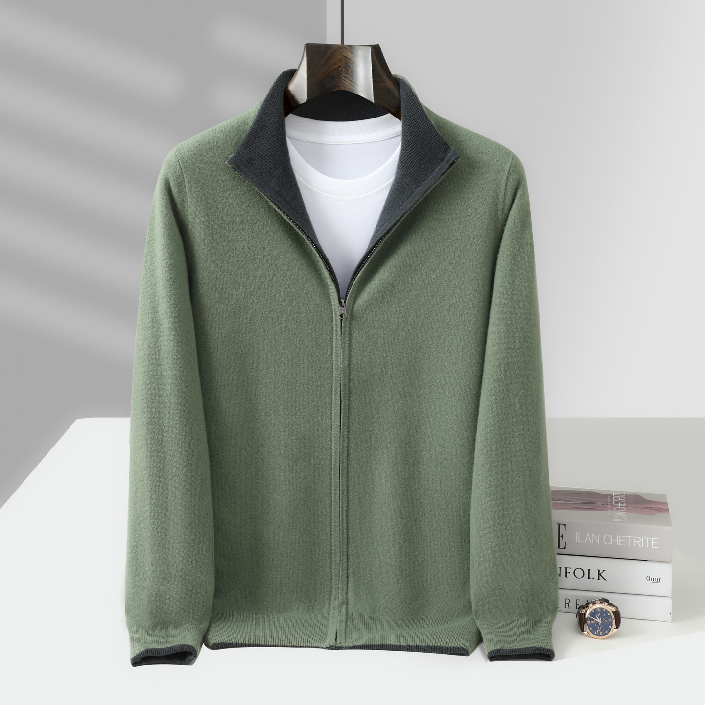羊绒开衫男士立领双面穿双层加厚毛衣半高领商务休闲拉链针织外套