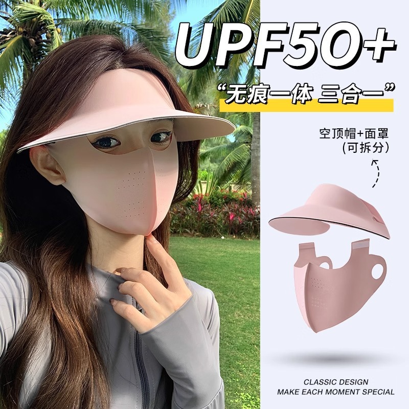 つば付き日焼け止めマスク全顔首保護一体紫外線防止女性日よけ顔ジニ氷糸マスク