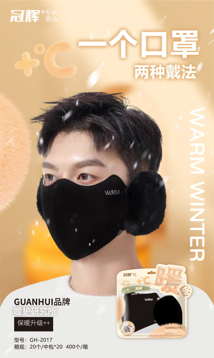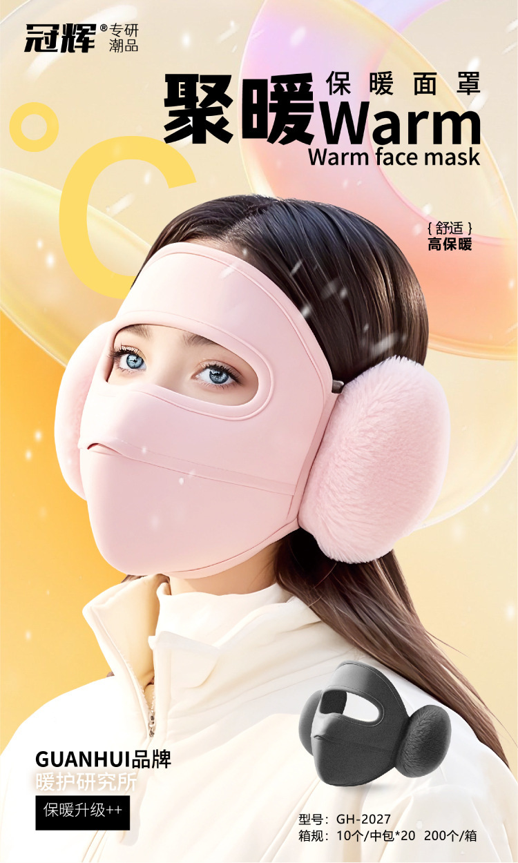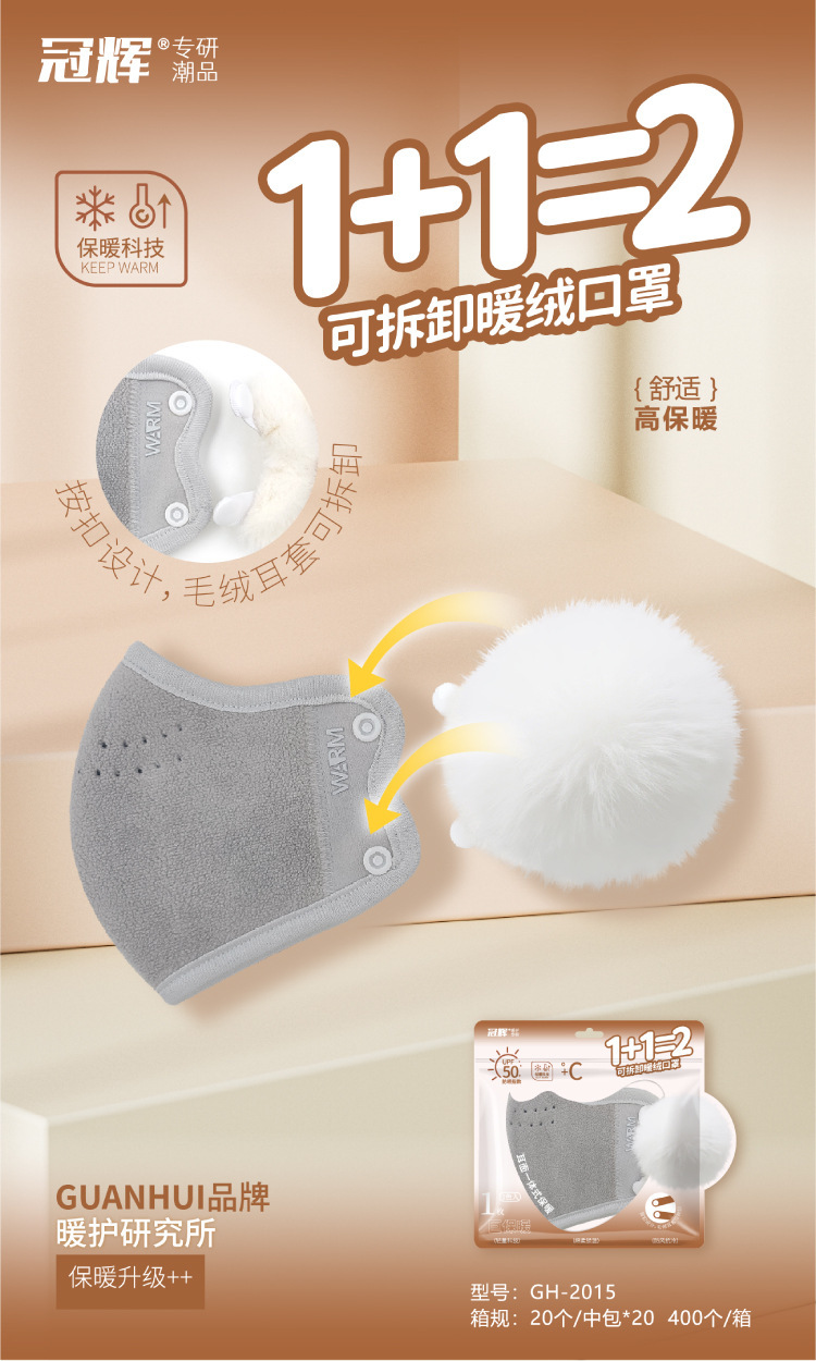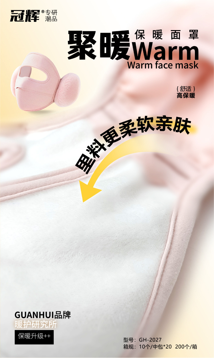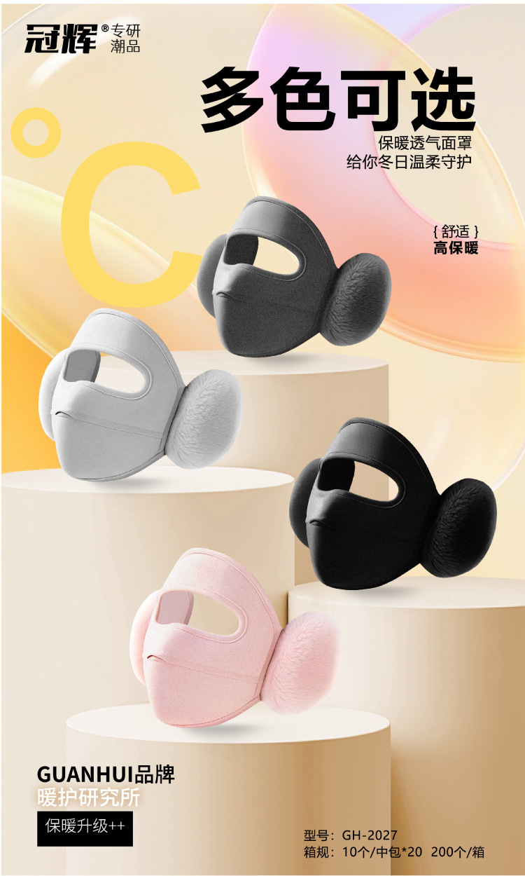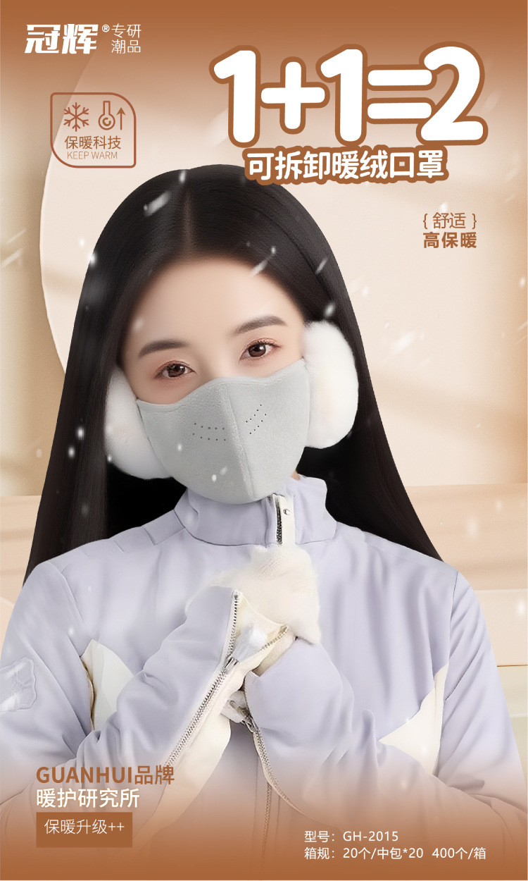 冠辉保暖口罩高颜值防护可拆卸暖绒耳罩一体绵柔户外骑行防寒防风