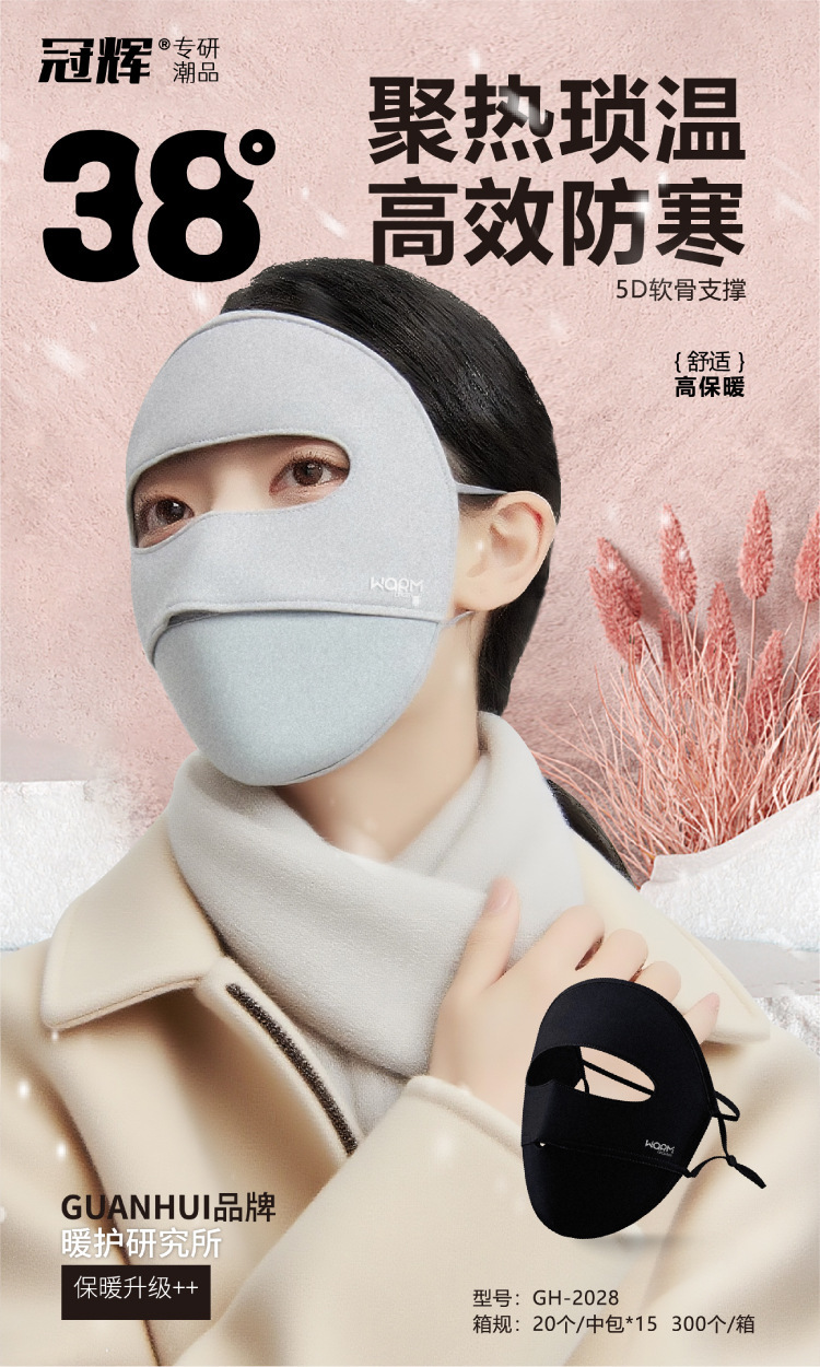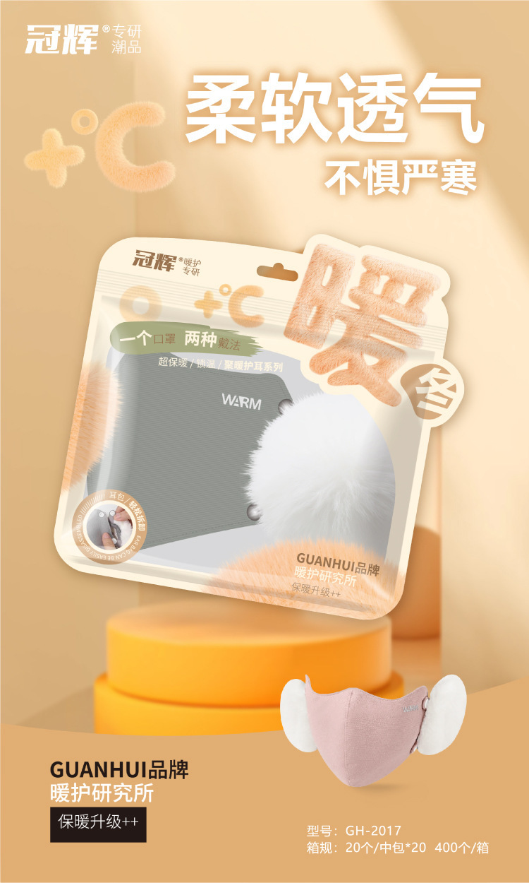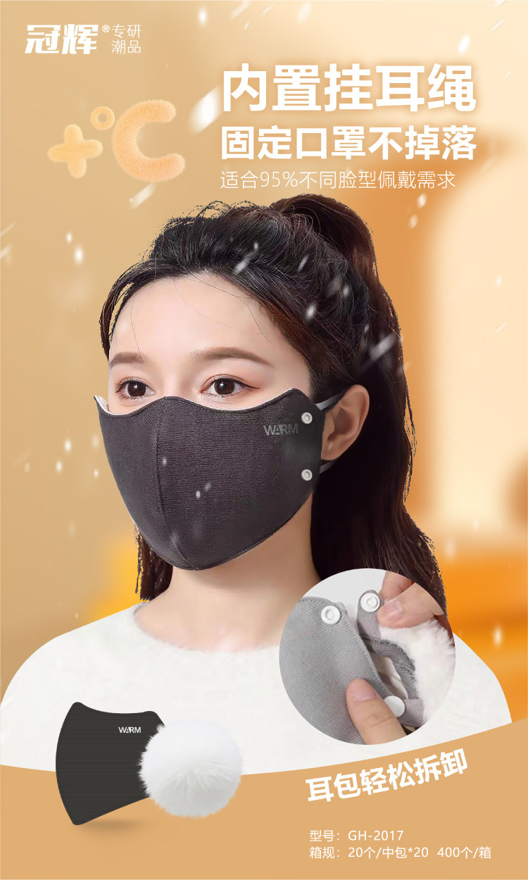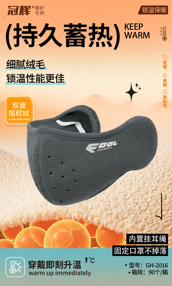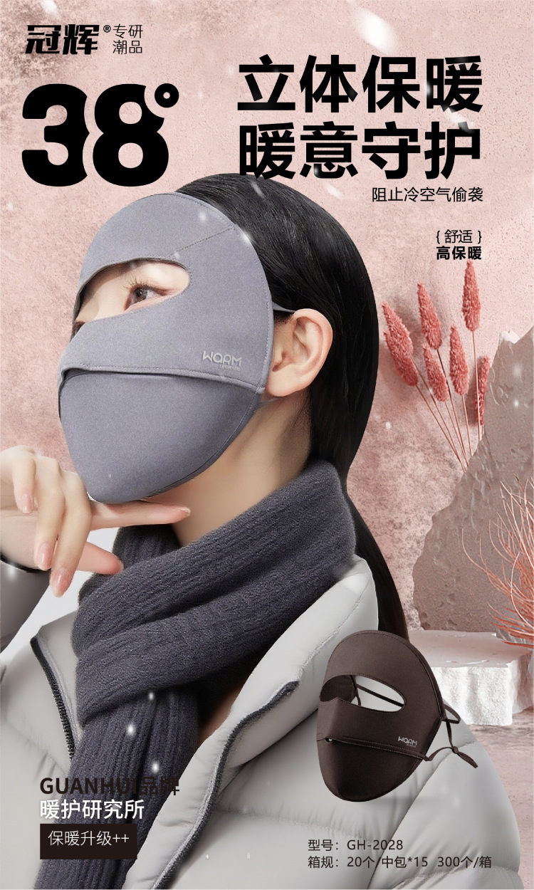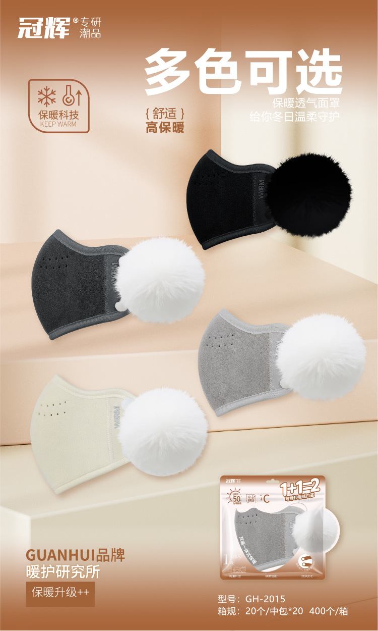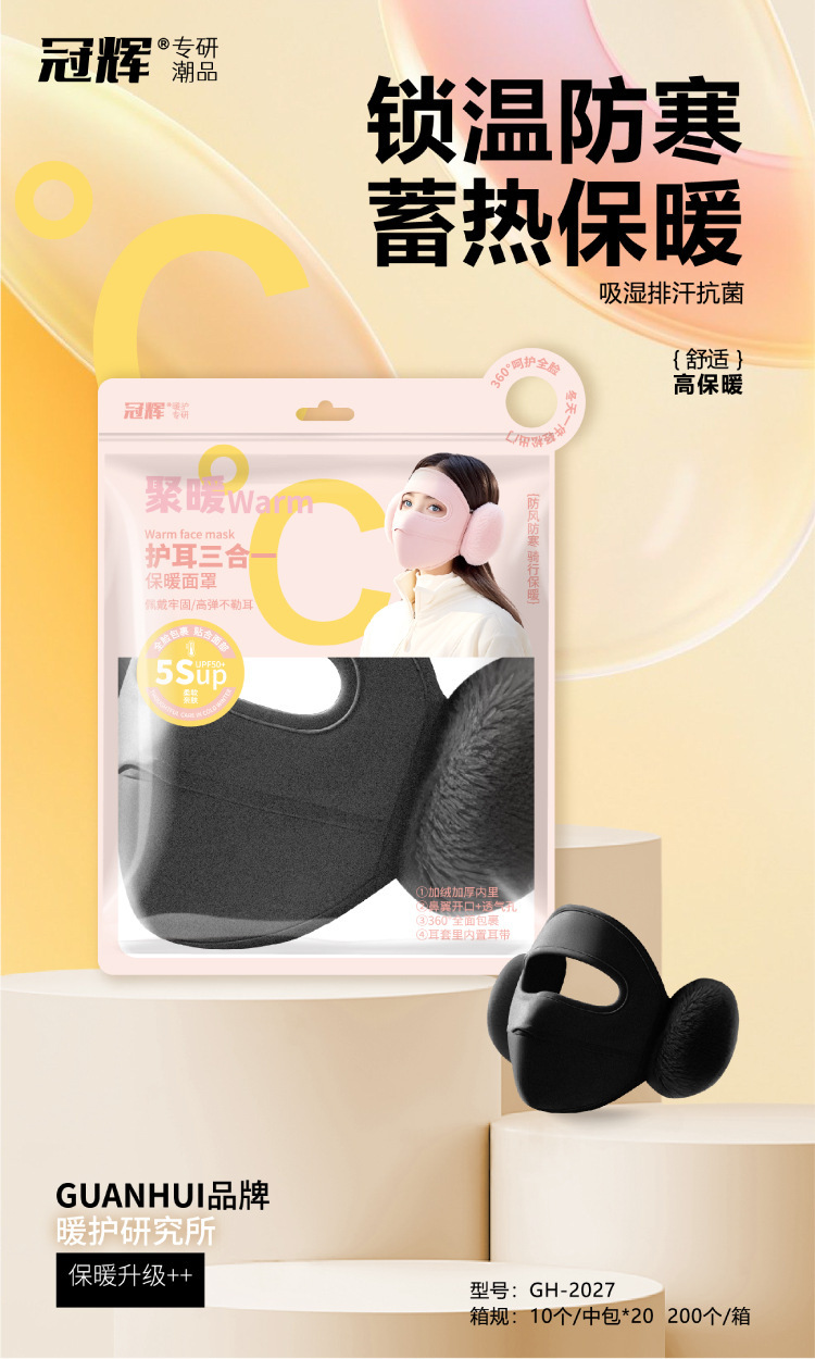 冠辉保暖口罩高颜值防护可拆卸暖绒耳罩一体绵柔户外骑行防寒防风