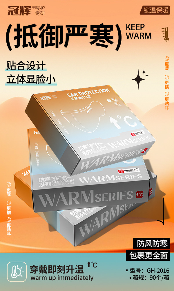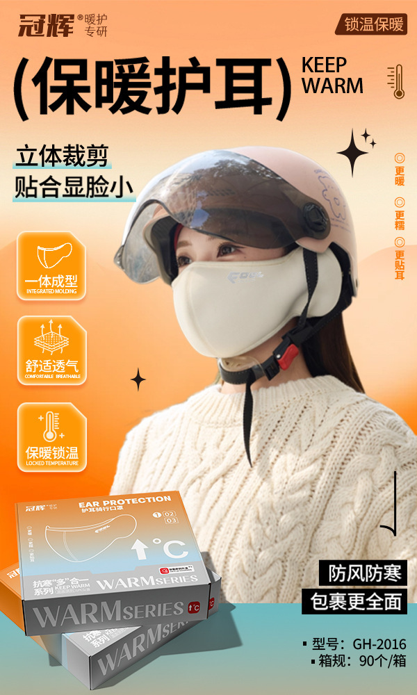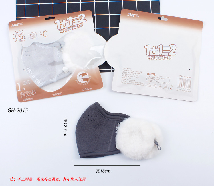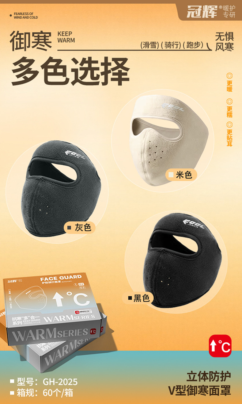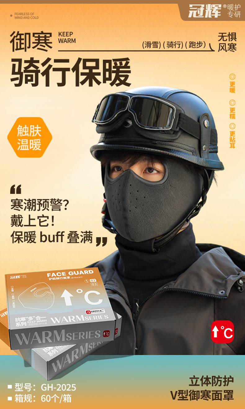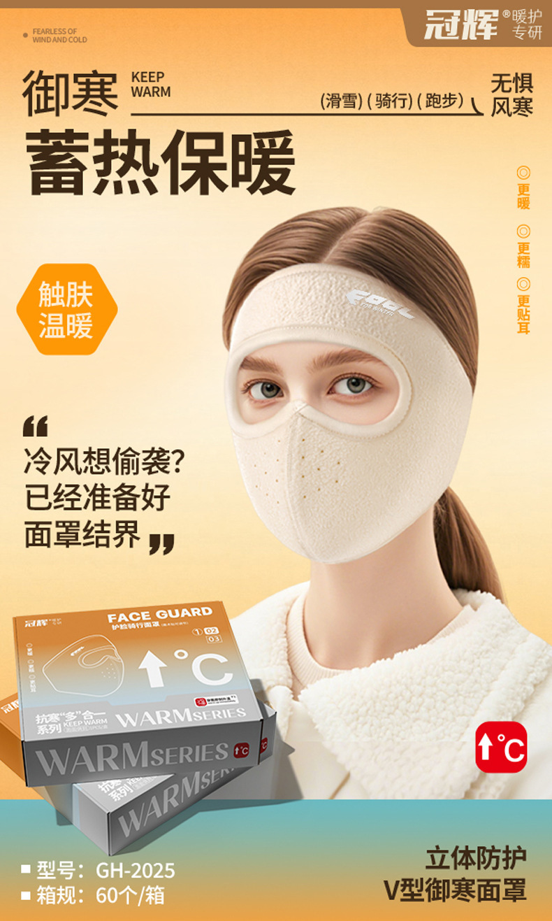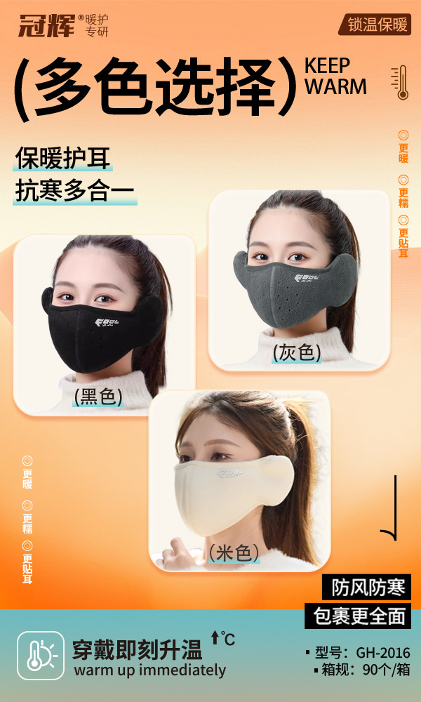 冠辉保暖口罩高颜值防护可拆卸暖绒耳罩一体绵柔户外骑行防寒防风
