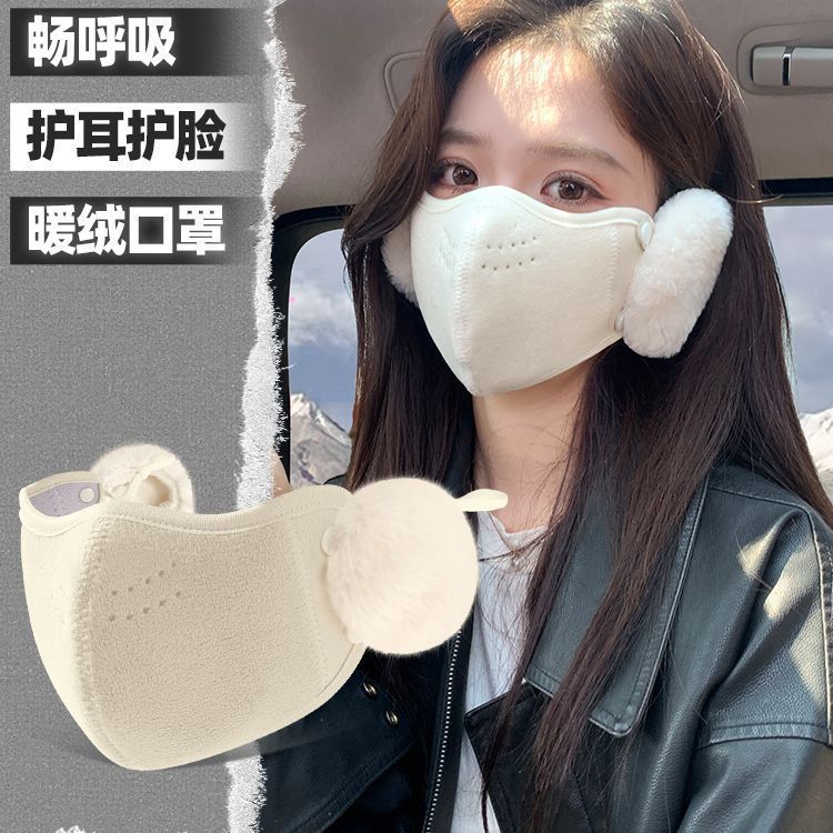 冬季女士保暖生活口罩秋冬加绒加厚护耳耳机防寒防风显脸小面罩