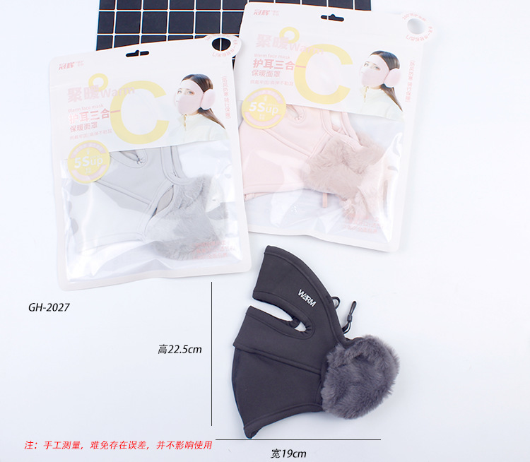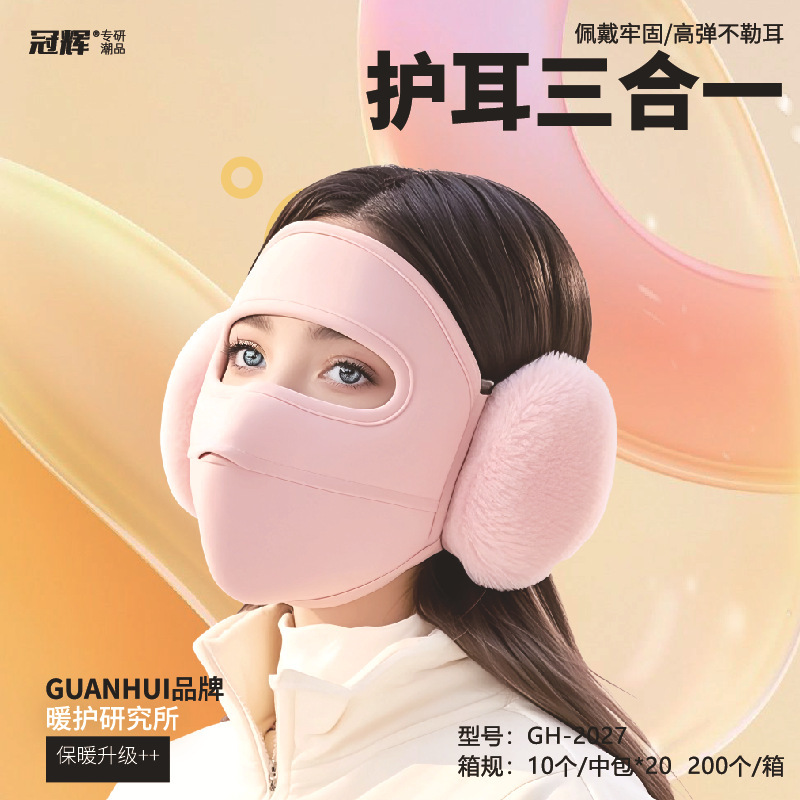 冠辉冬季保暖透气口罩女加厚防风护耳套面罩御寒户外骑车防冻脸罩