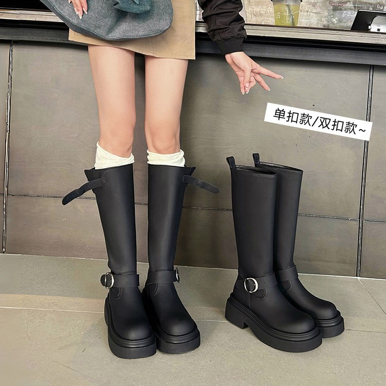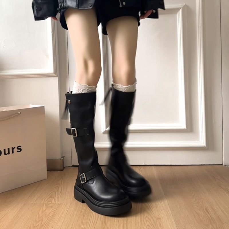 2025春秋新款高筒小个子长靴不过膝厚底靴子皮带扣长筒靴女款