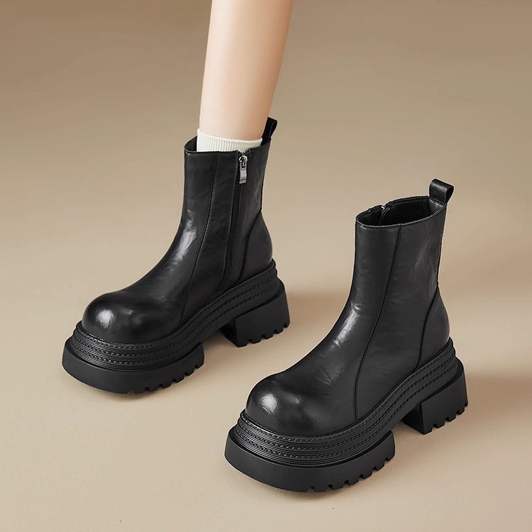 厚底马丁靴女2025新款秋冬黑色巨好看增高中筒短靴英伦风靴子超火