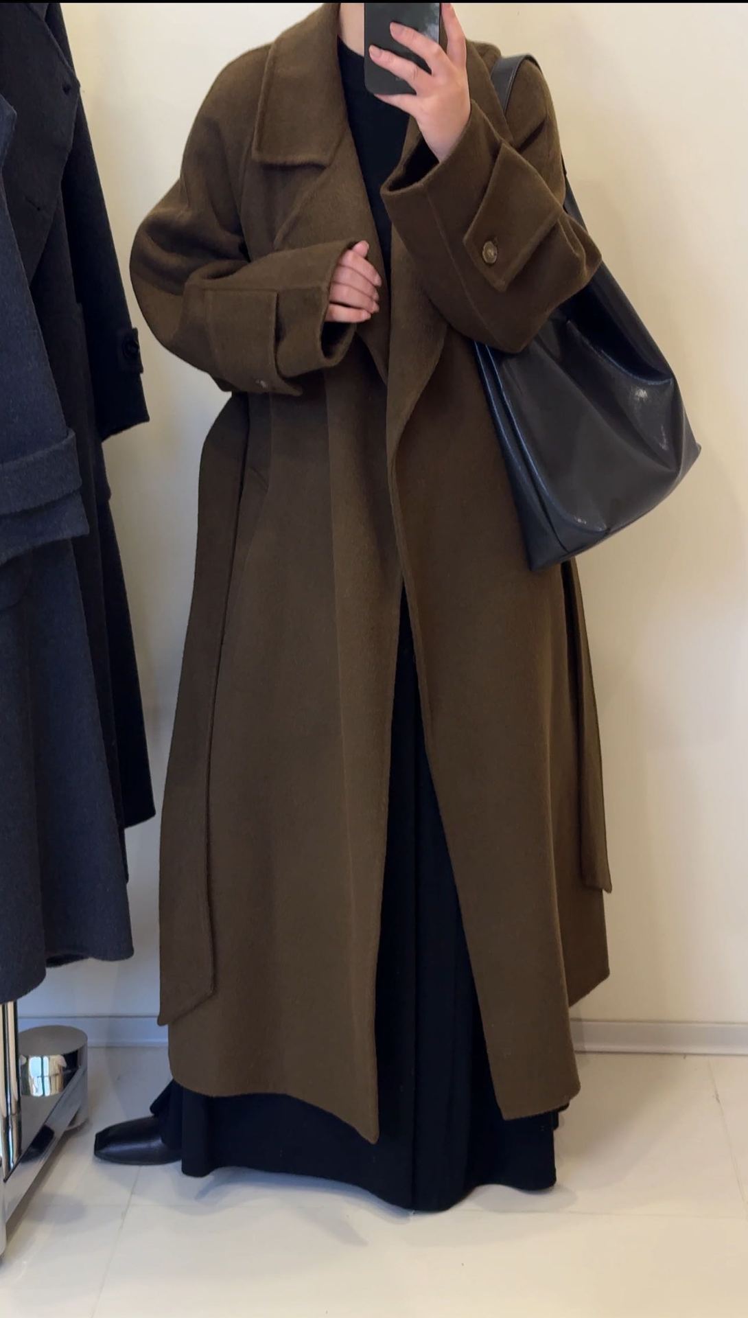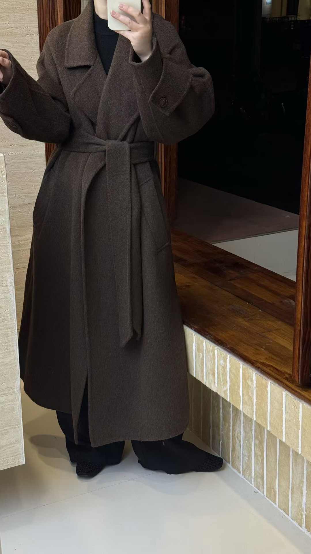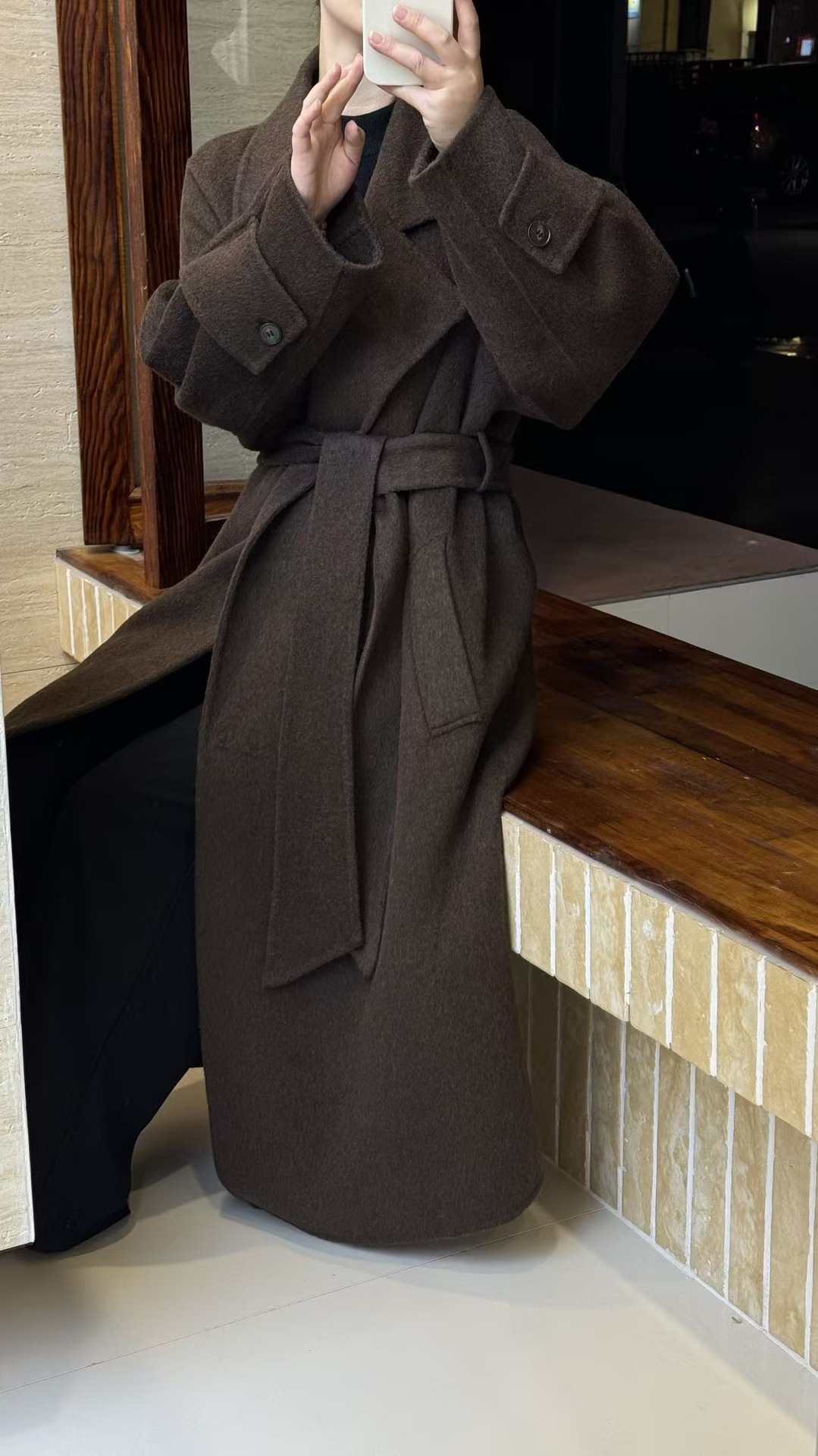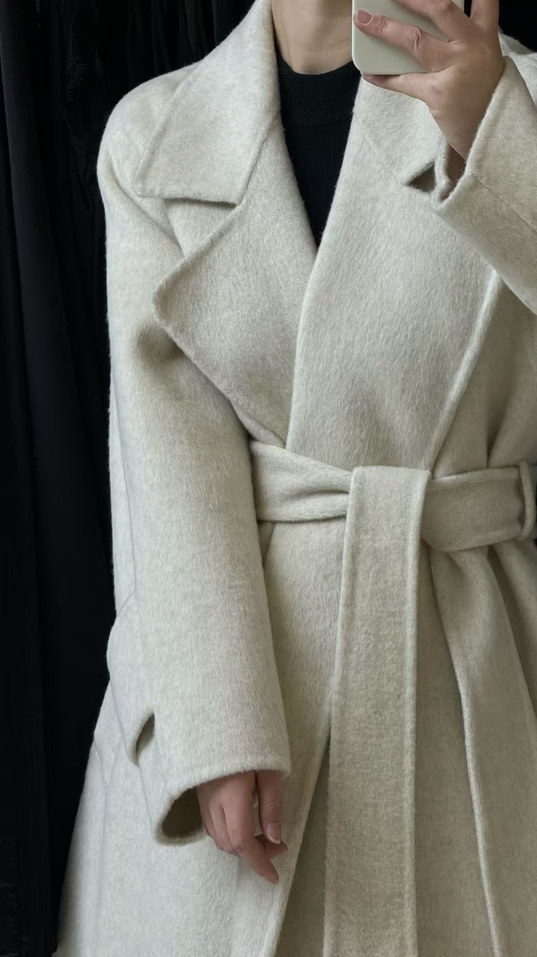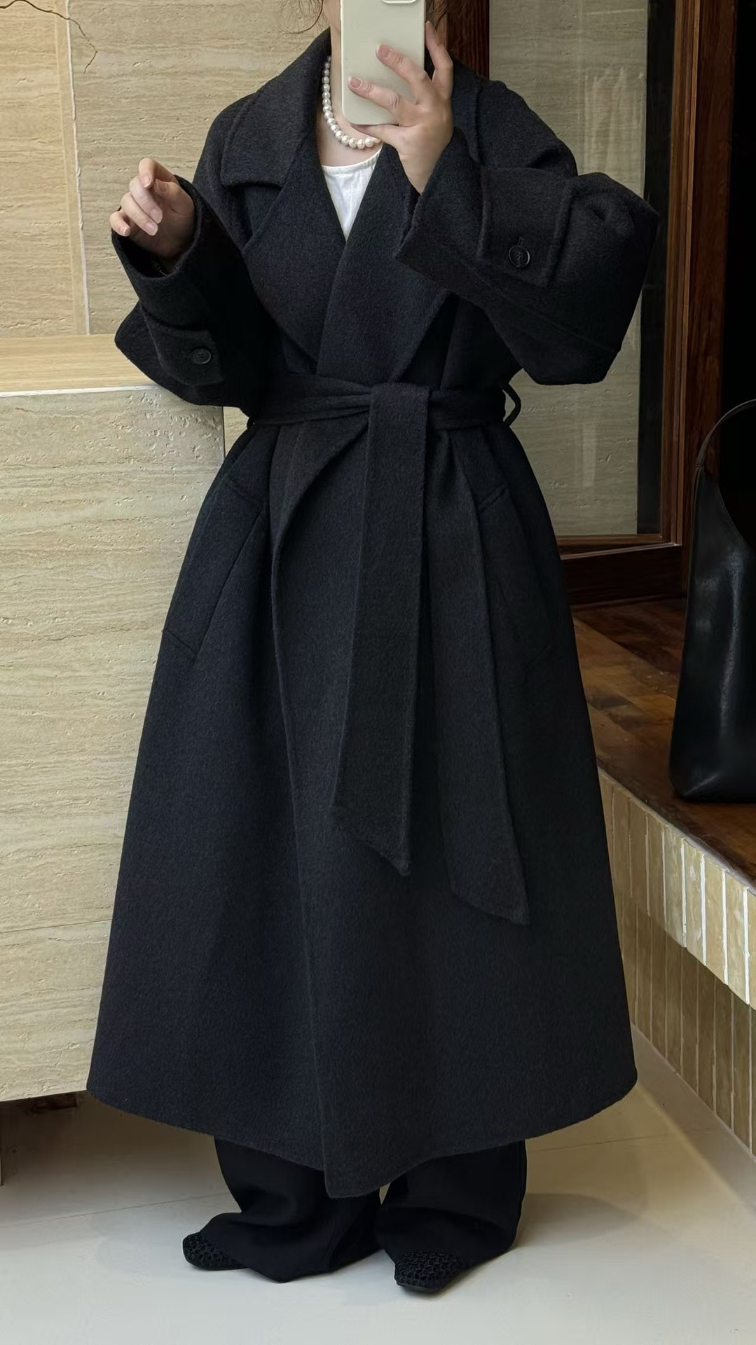 浴袍袖袢高级感系带宽松韩系慵懒大衣秋冬新款双面呢羊毛大衣长款