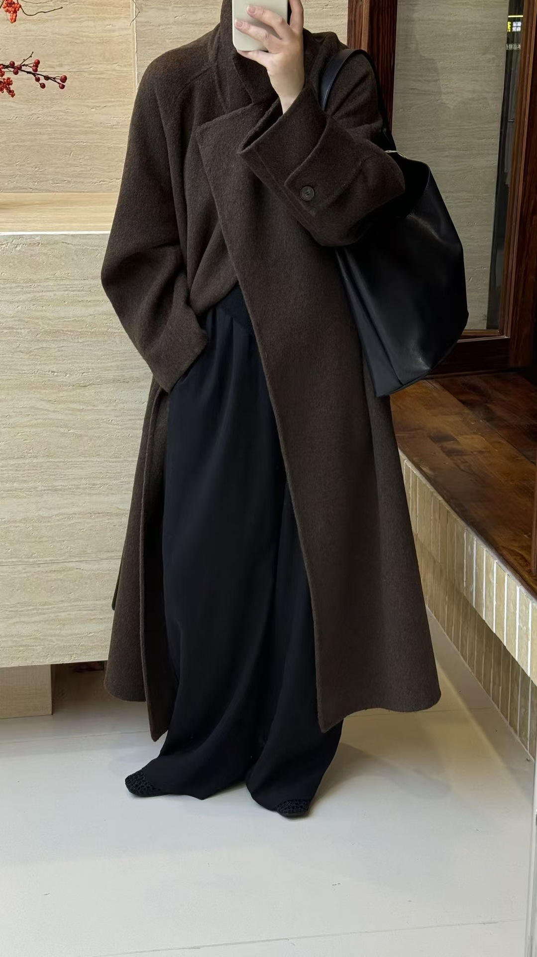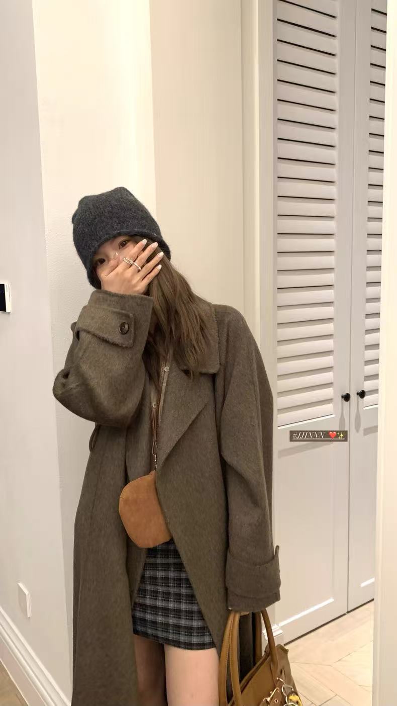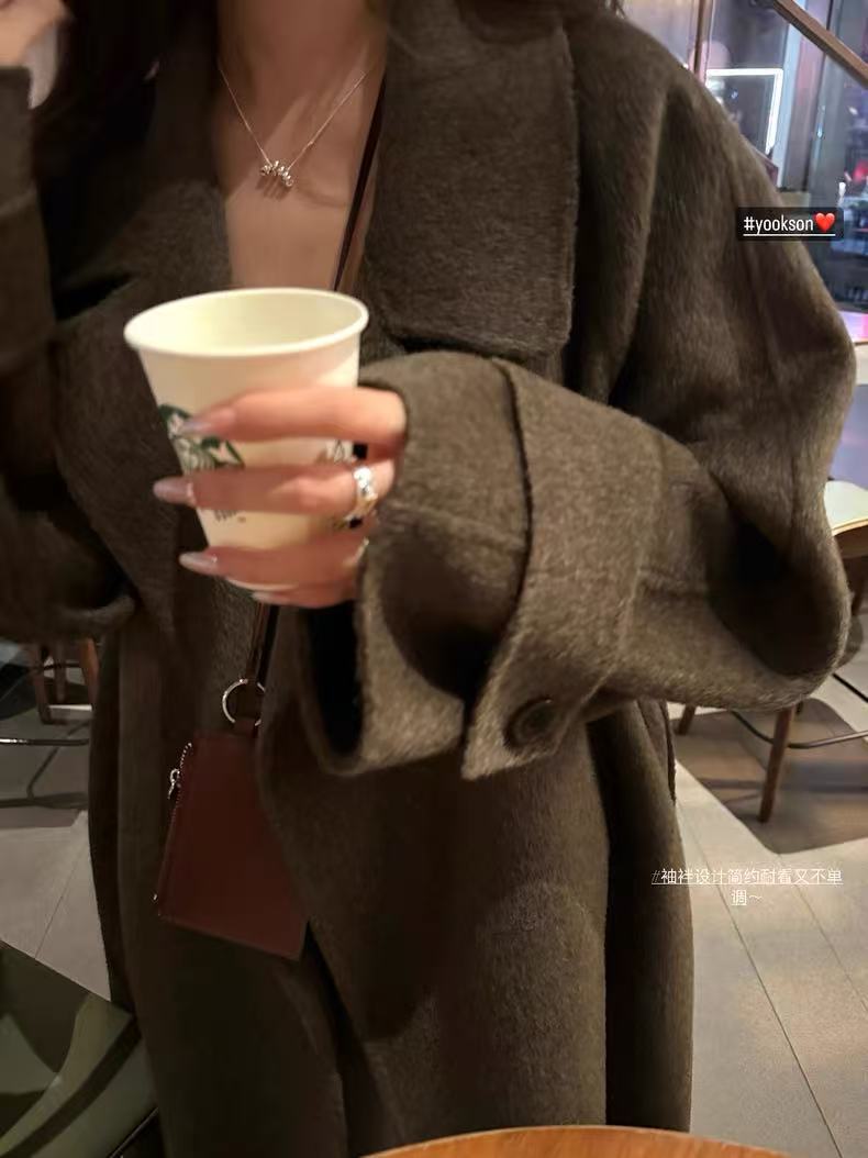 大翻领棕咖色老钱风双面羊毛大衣女中长款慵懒秋冬高级感毛呢外套