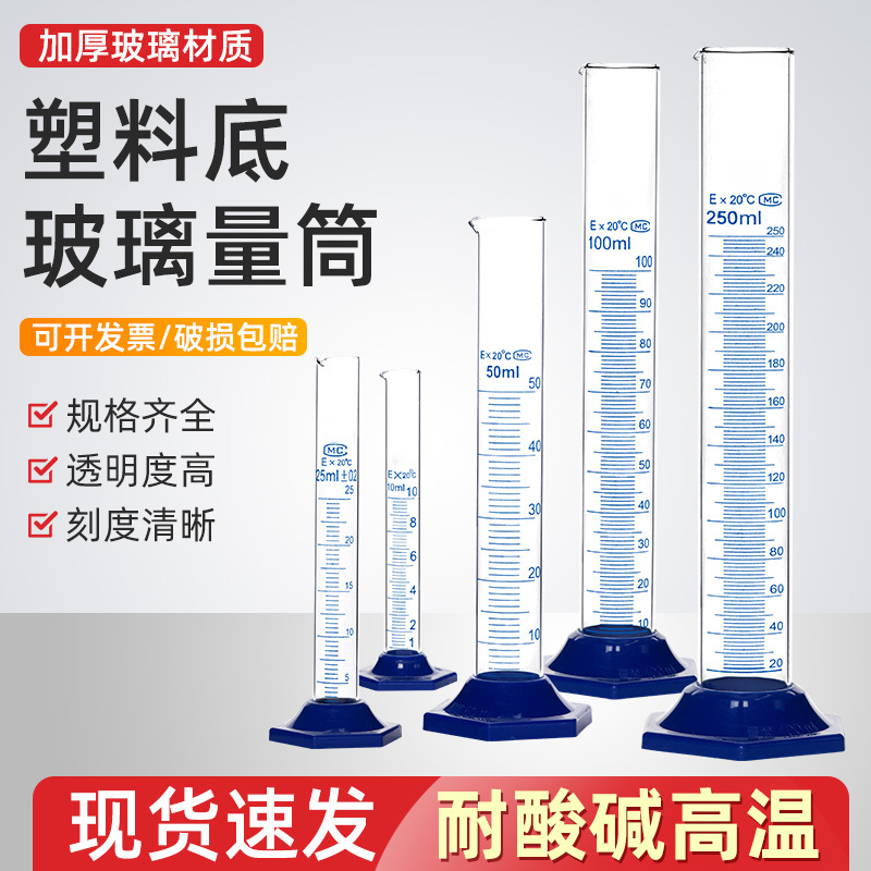 塑料底座玻璃量筒5/10/20/25/100/250/1000ml化学实验刻度量筒