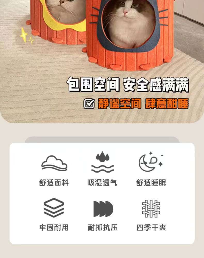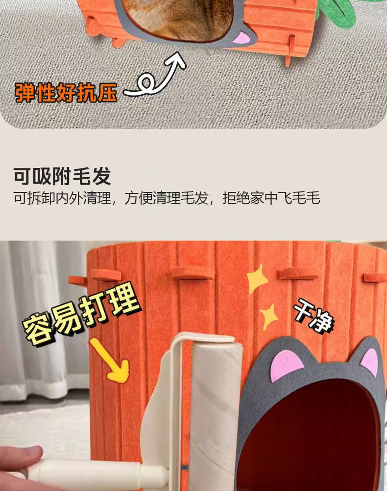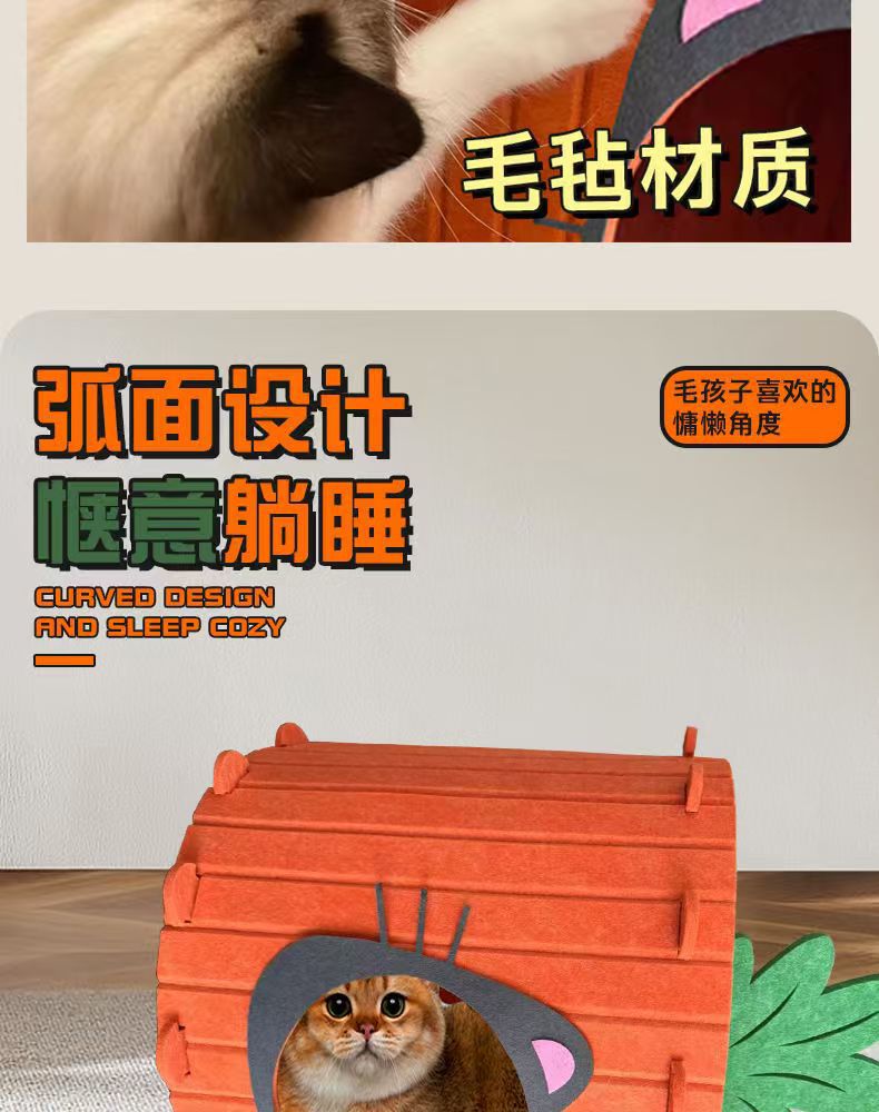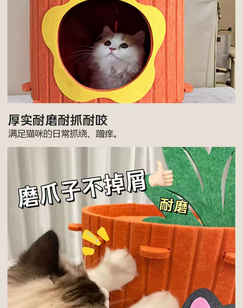 胡萝卜猫窝猫别墅猫抓板一体耐磨不掉屑四季通用毛毡猫房子可拆卸