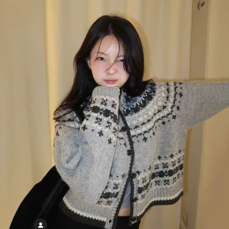 在庫あり 2025冬新作韓国東大門フード付きジャカードニットカーディガンフェアアイルセーター