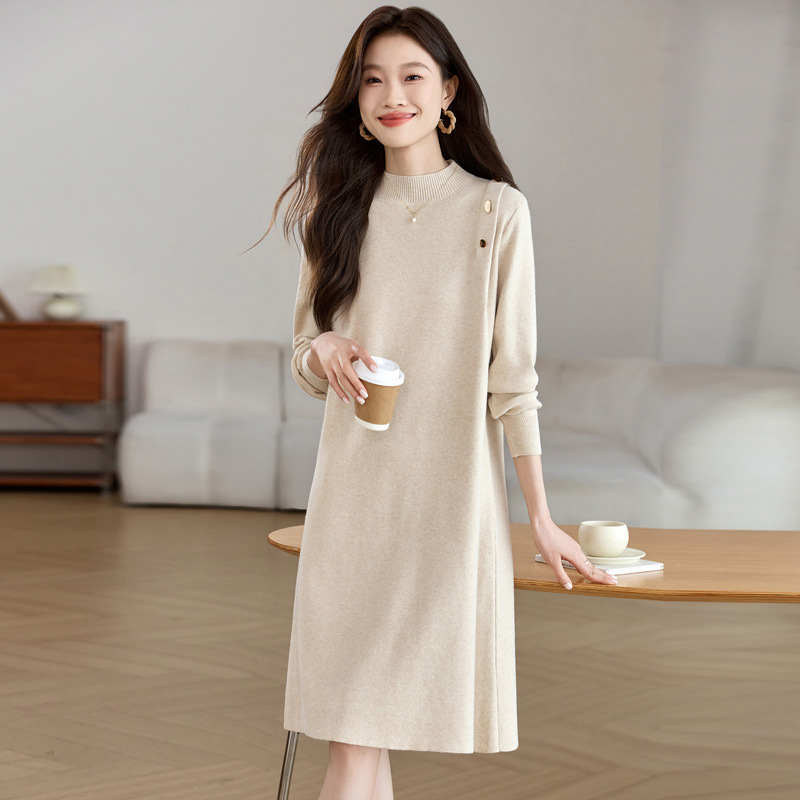 女性用ミドル丈セーター、お尻カバートップ、2024年秋冬新作冬厚手インナーニットボトムシャツ冬